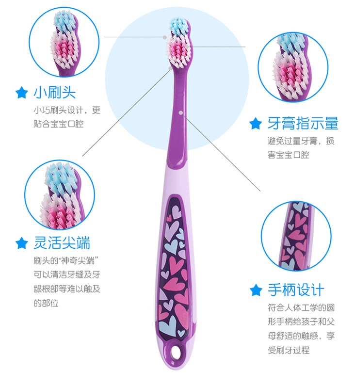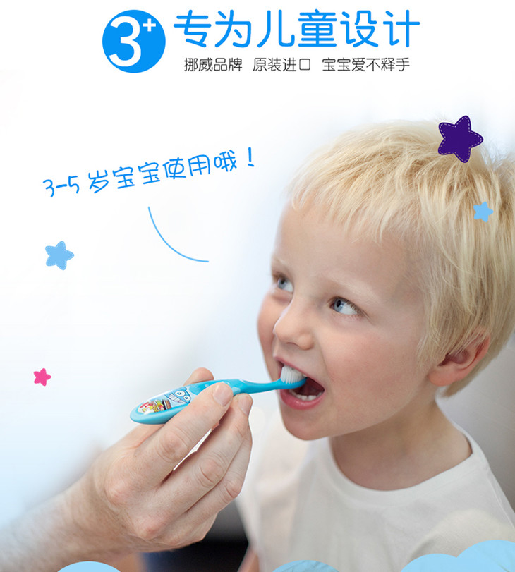 分0岁-2岁,3岁-5岁,6岁-9岁不同的年龄段做了不同的设计,婴幼儿阶段的儿童牙刷的短手柄卡通设计,瞬间抓住宝宝们的好奇心,刷牙也变得更好玩了! 稍大点的儿童还设计了“神奇尖端”小刷头,可以很好的清洁牙缝以及刷到普通牙刷难以触及的位置。超赞!成人款则简约时尚非常有格调,它还荣获了著名的“红点”设计大奖,是北欧非常有口碑的品牌!牙膏也分不同的阶段,安全,有效防蛀牙。