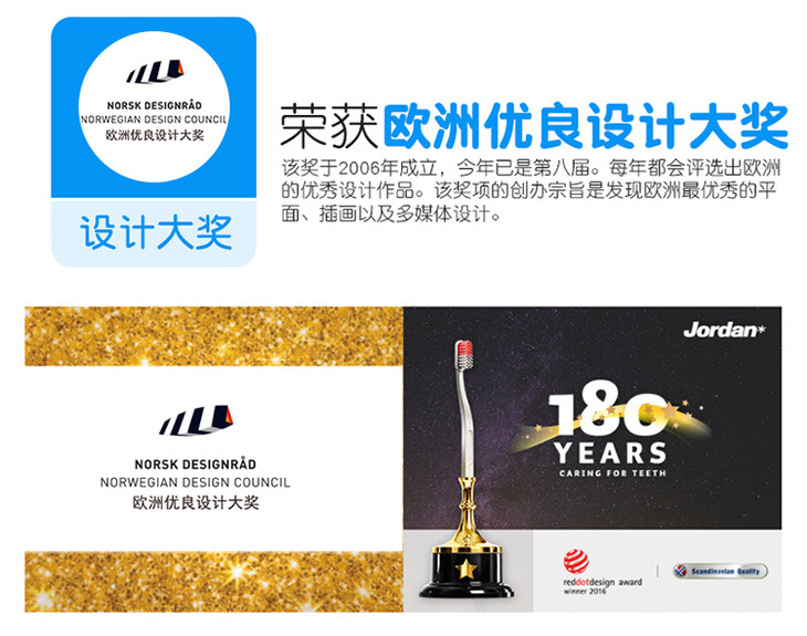 这个牌子是挪威的,有180年的历史了,专业的口腔品牌。设计也是非常的喜欢,简约有品的北欧风设计感,用在牙刷上也非常赞啊!我很喜欢,感觉摆放在洗漱台上,也是高级感啊。