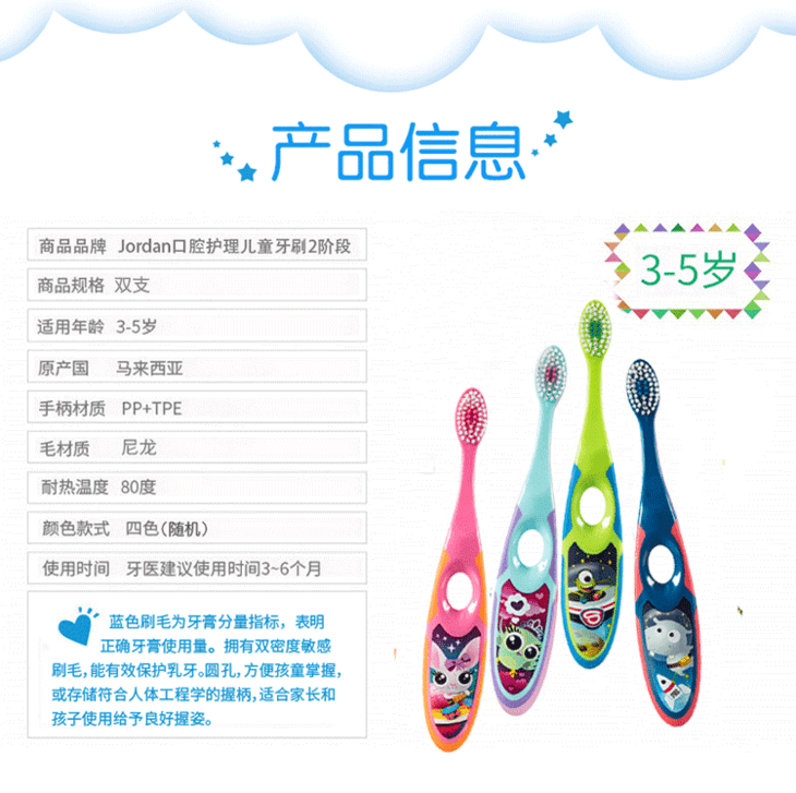全部采用食品级安全材质,婴幼儿的日常用品可真的马虎不得,一定要选好品牌的,毕竟牙刷和牙膏也是入嘴的!牙膏不含起泡剂,不含糖,不含防腐剂,放心给宝宝用。