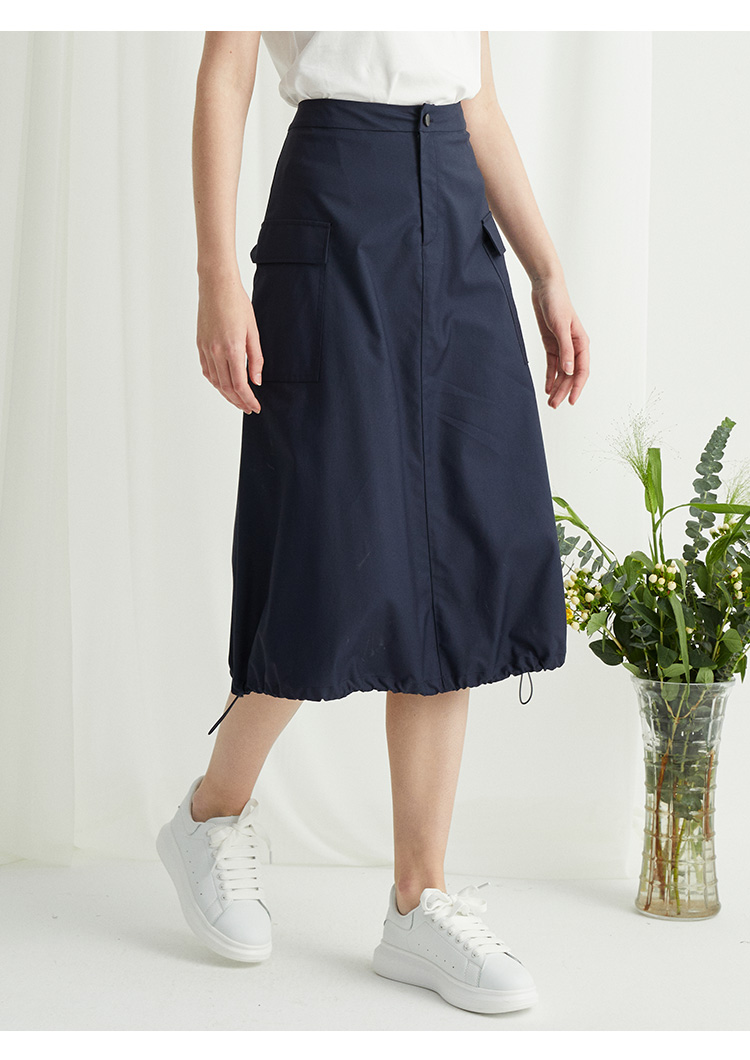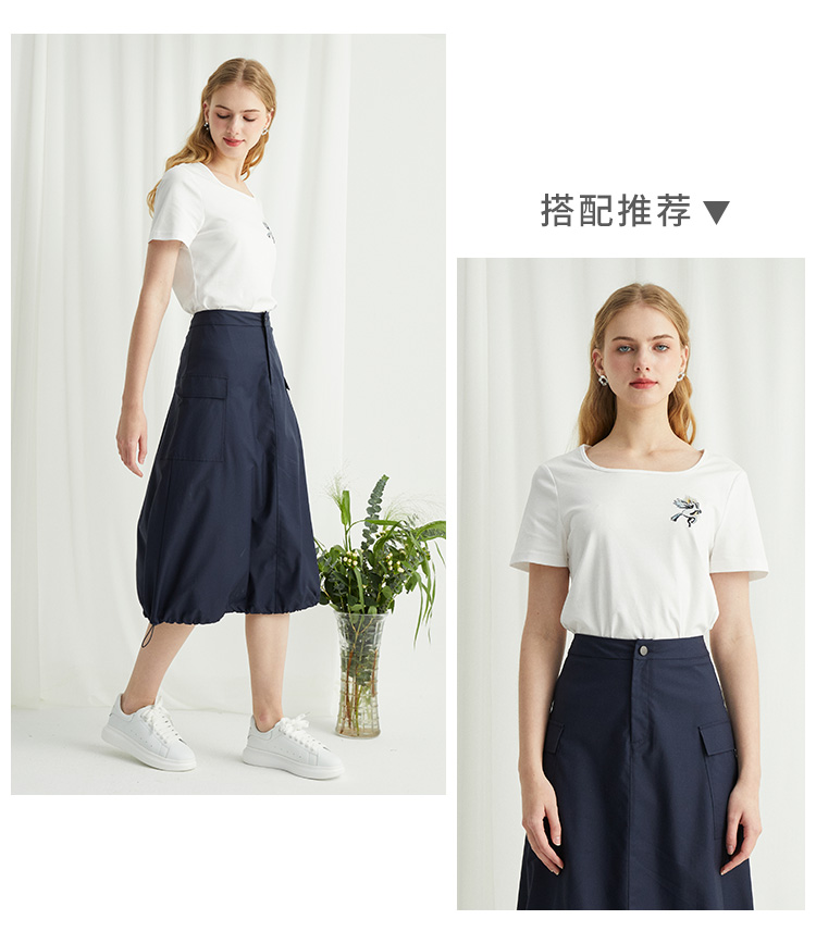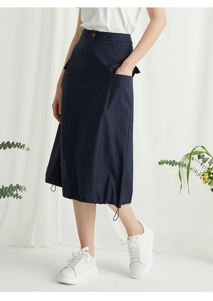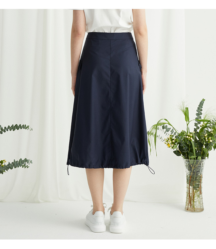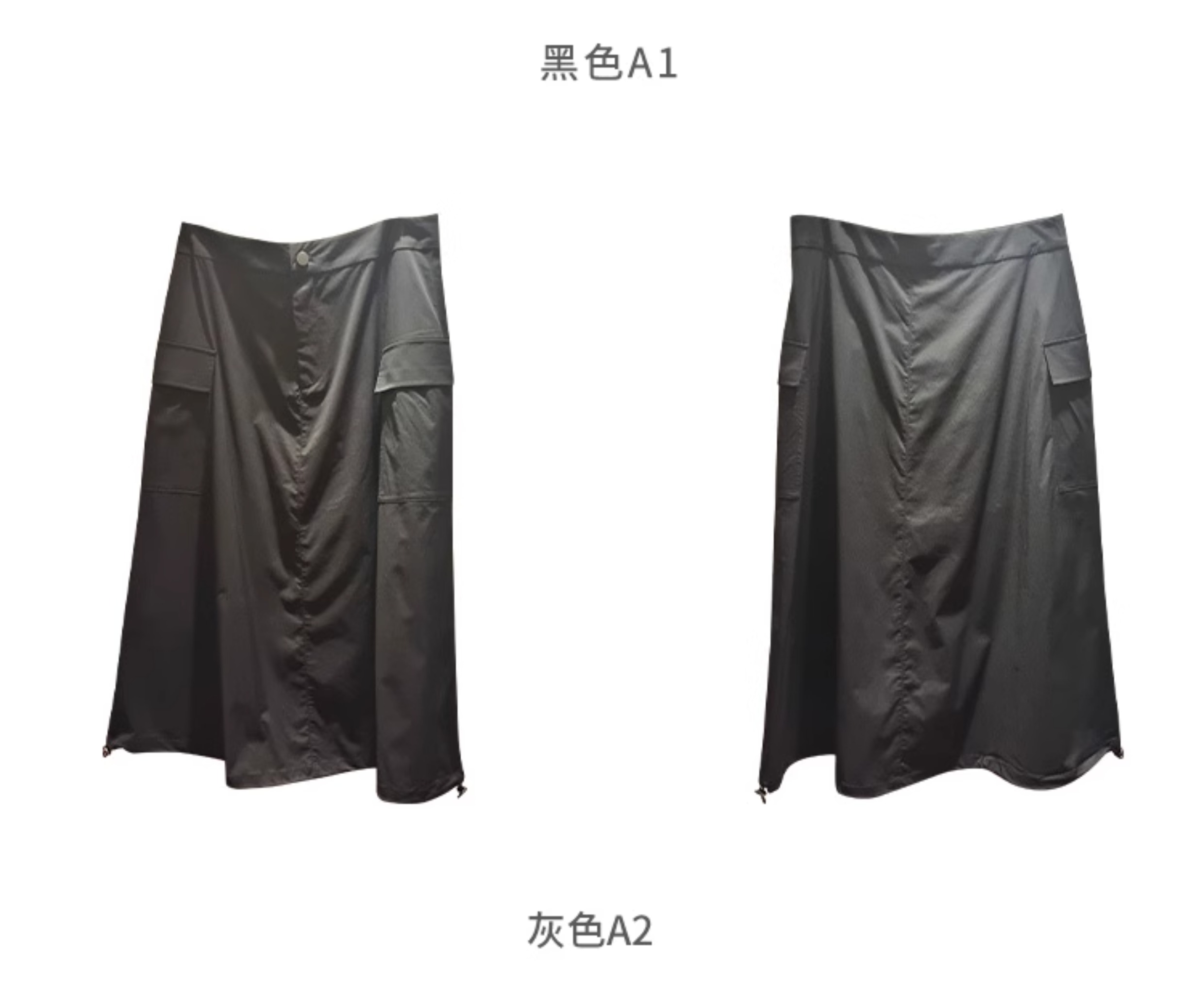 VIVIAN LIU R2414002梅春女装新款时尚腰部系扣下摆抽绳A字半裙