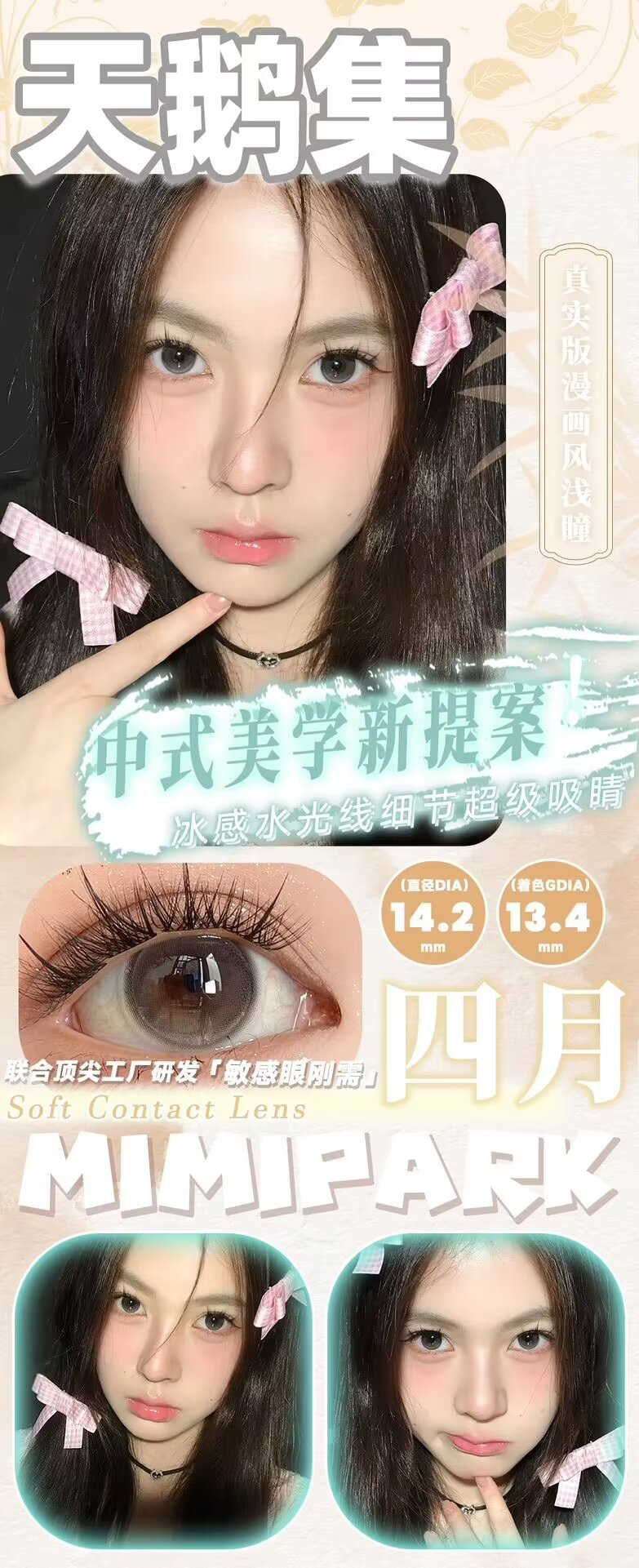 Mimipark 月抛 南风序/天鹅集 蓝/黑 14.2mm 美瞳两片装 温柔