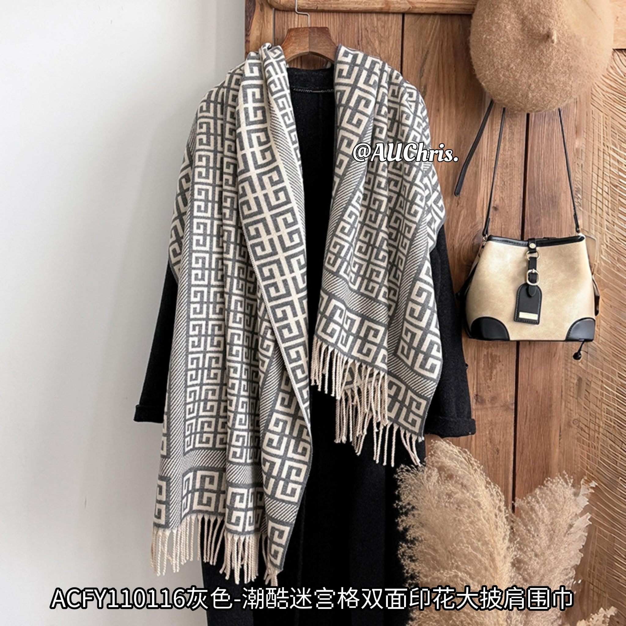 𝗔𝗨𝗖𝗵𝗿𝗶𝘀设计感印花双面围巾大披肩 ACFY110116-灰色