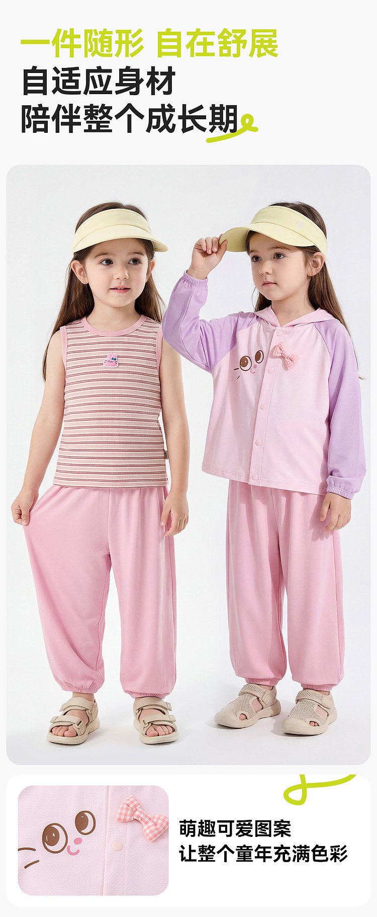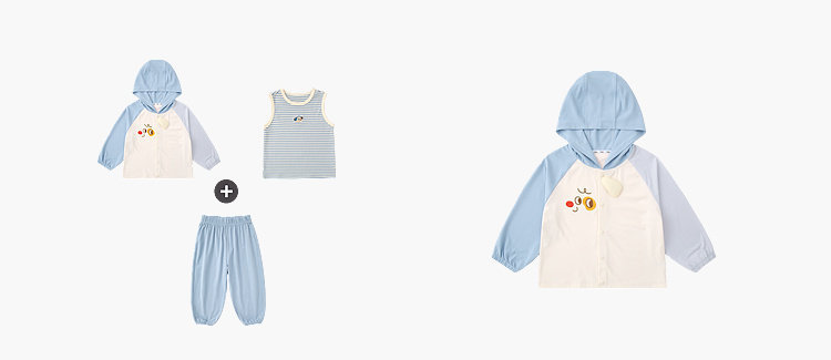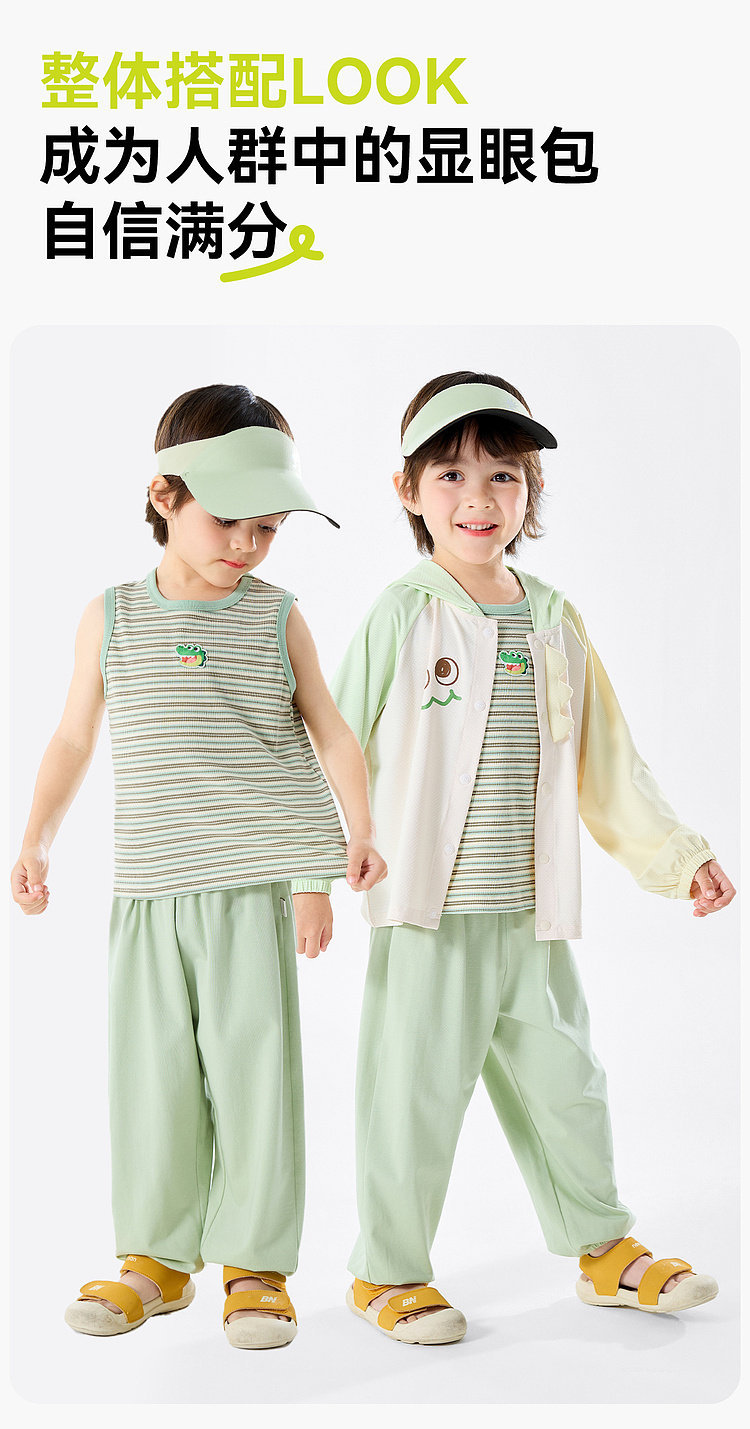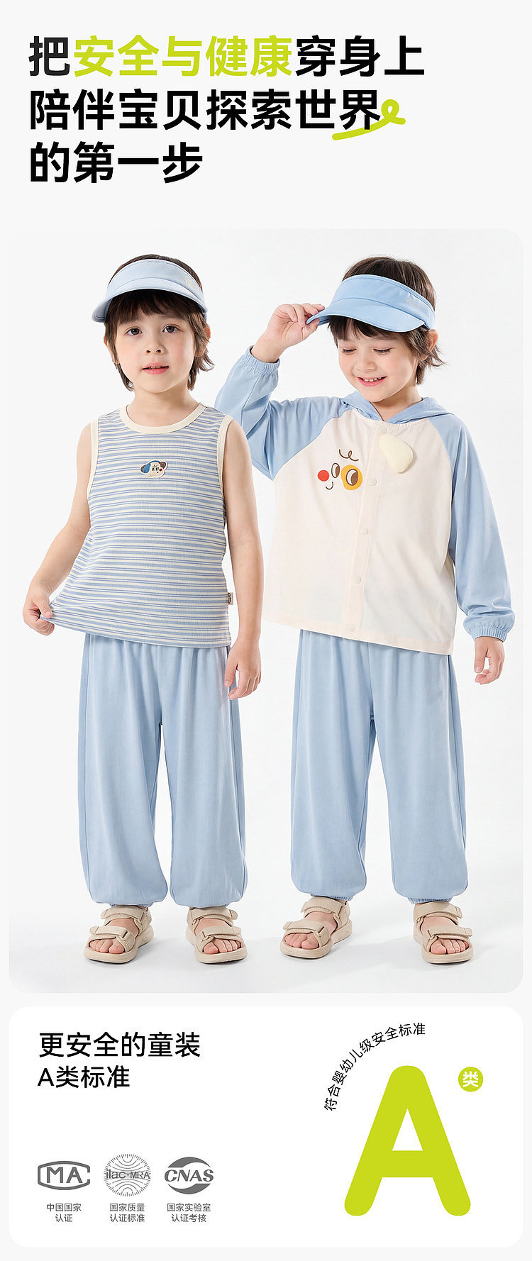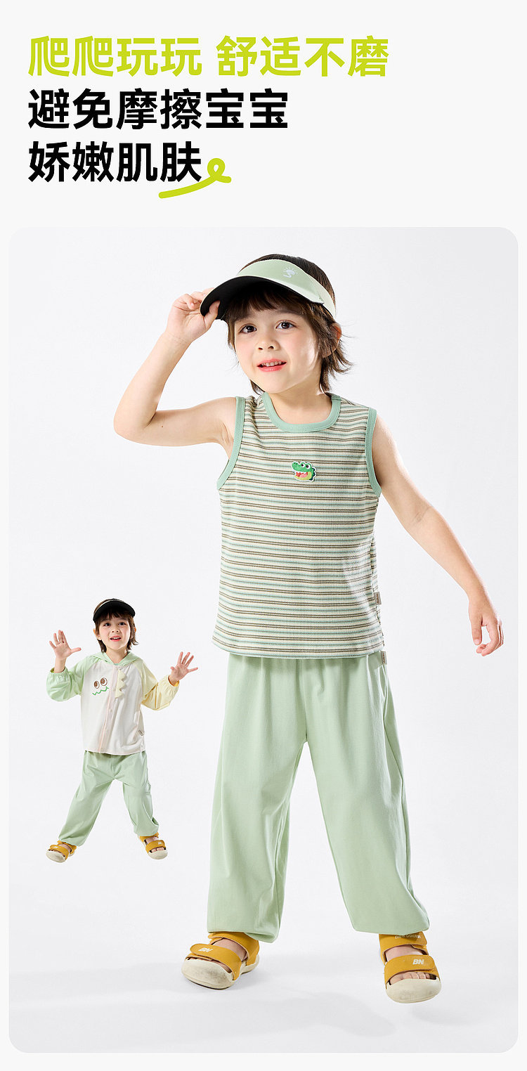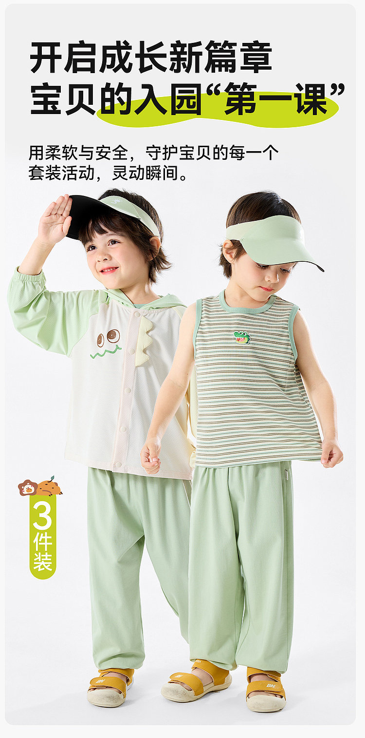 【3件装】嘟嘟家儿童套装男童t恤外套裤子女童短袖背心轻薄款夏装D6BTZ200