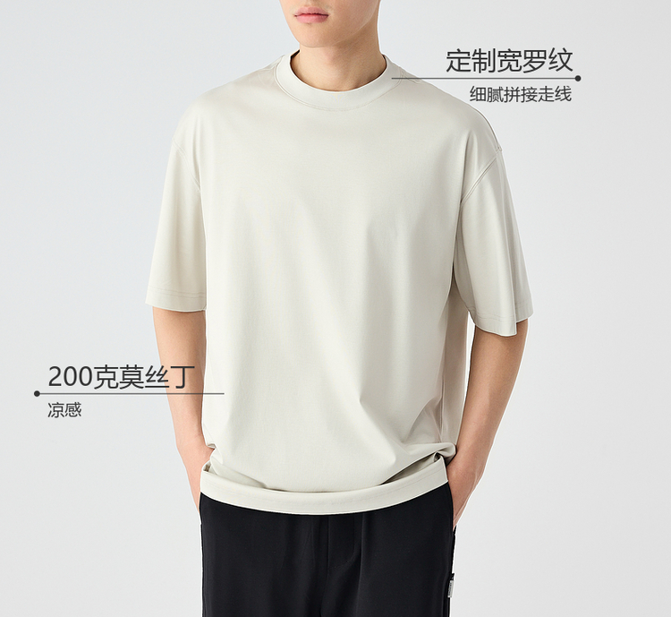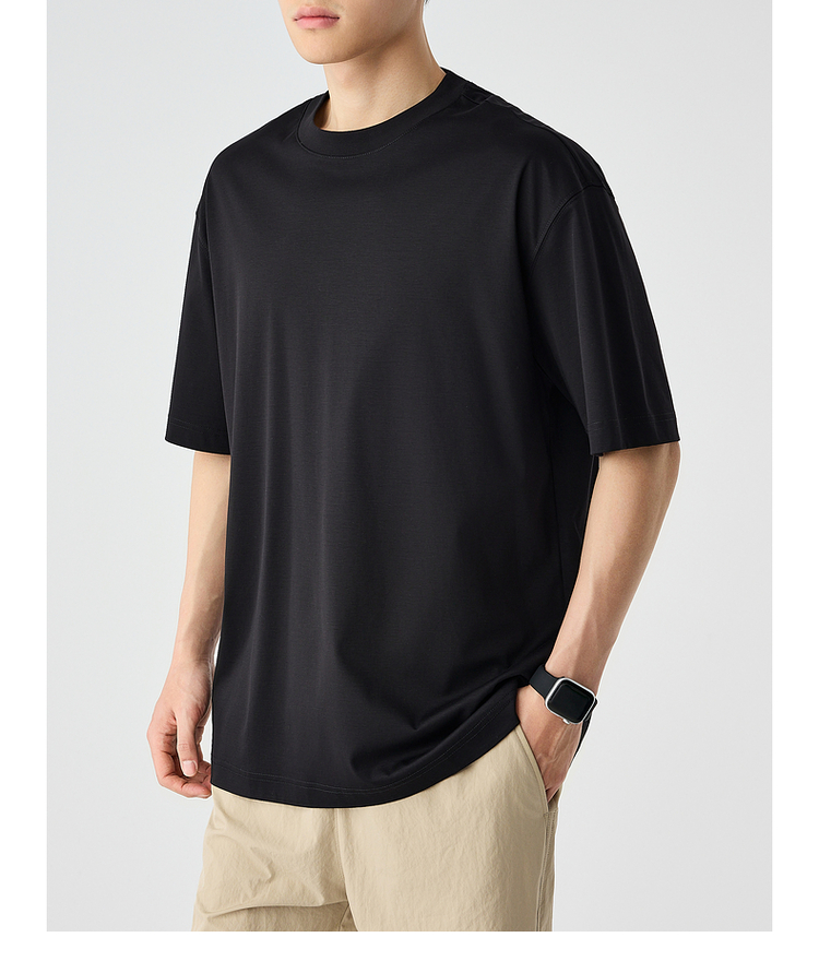 墨麦客简约休闲凉感圆领短袖T恤男士2025夏季新款宽松薄款t恤男