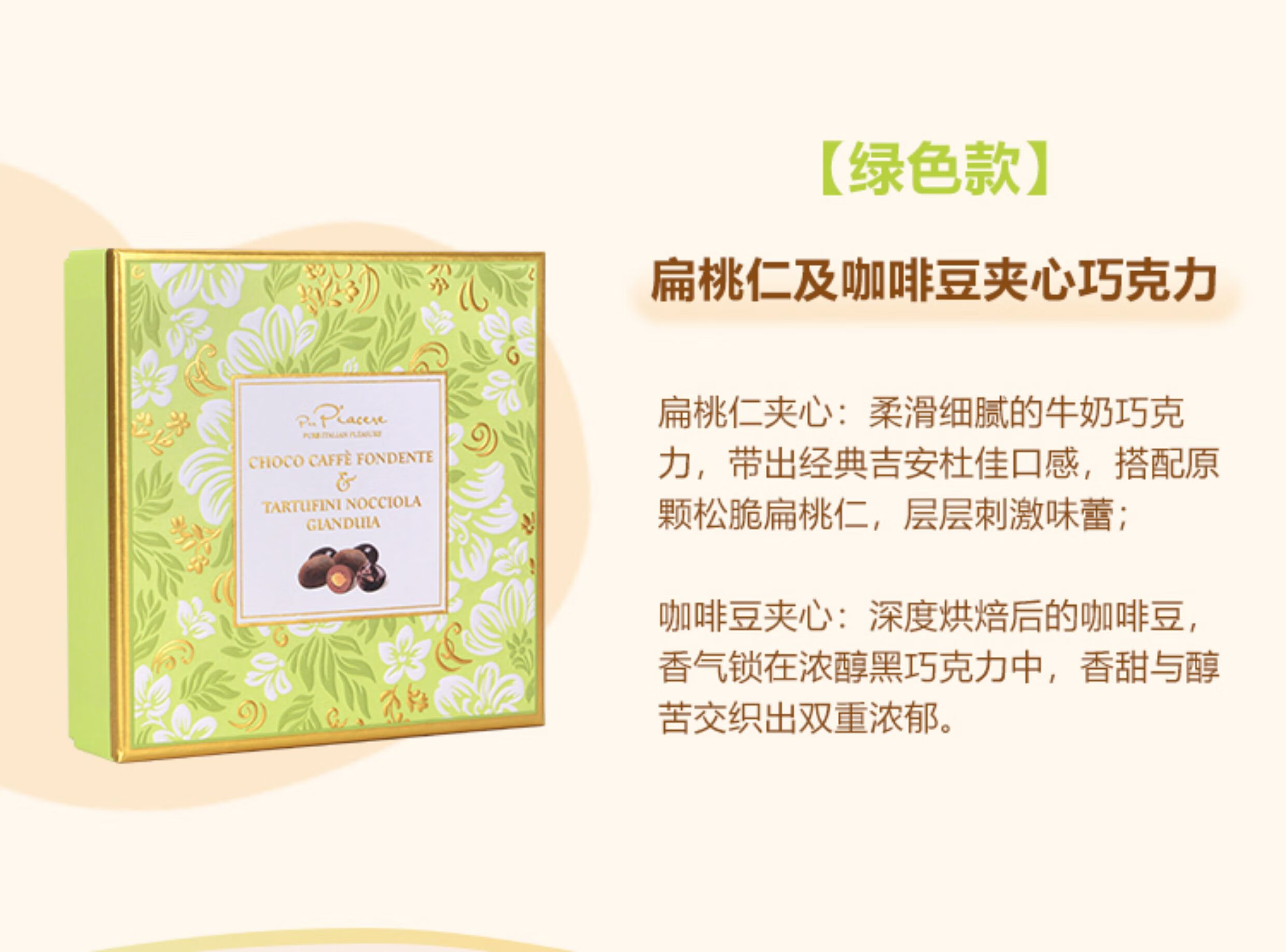 【新品上新】卡卡尼榛子及扁桃仁夹心/扁桃仁及咖啡豆夹心巧克力制品120g/045555/045556 小巧素雅而不失经典华贵