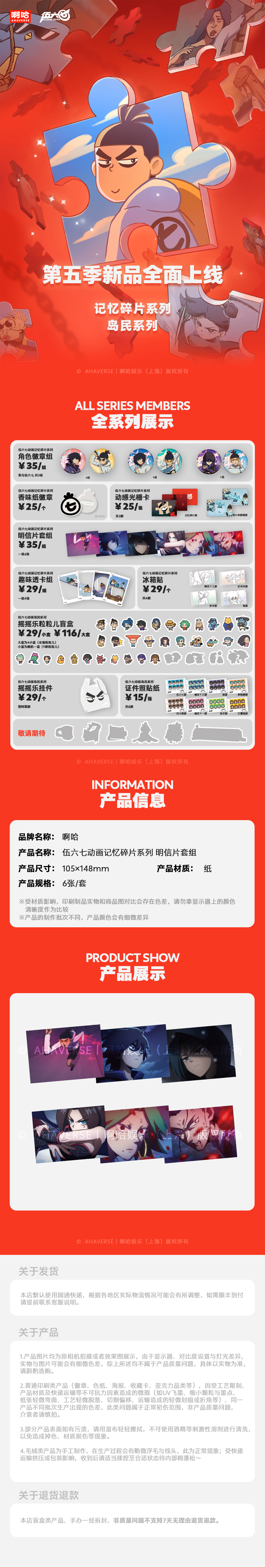伍六七动画 官方周边 记忆碎片系列 明信片套组