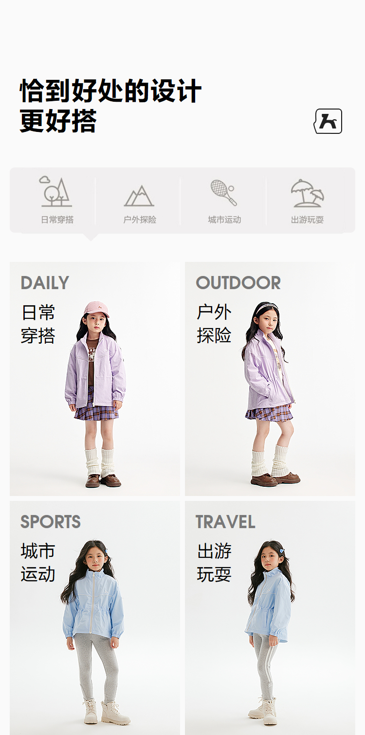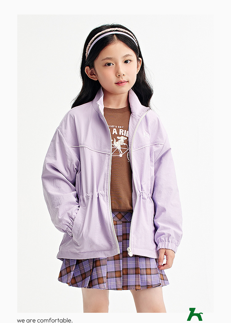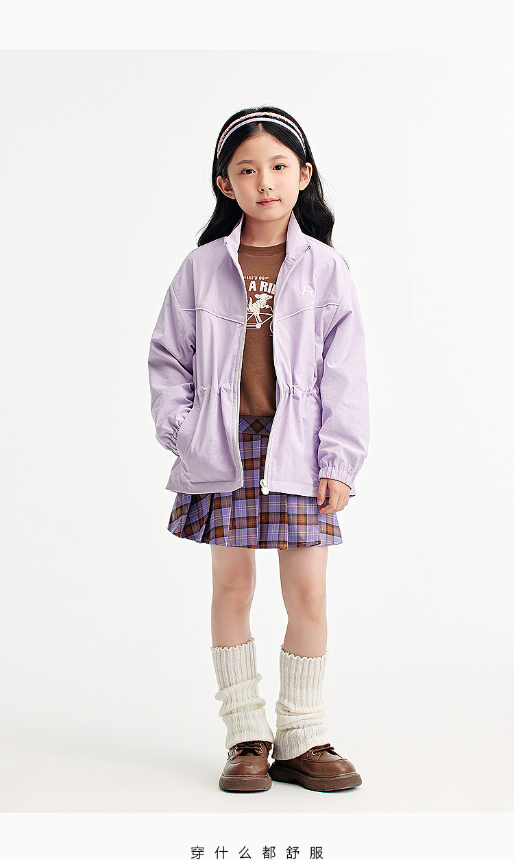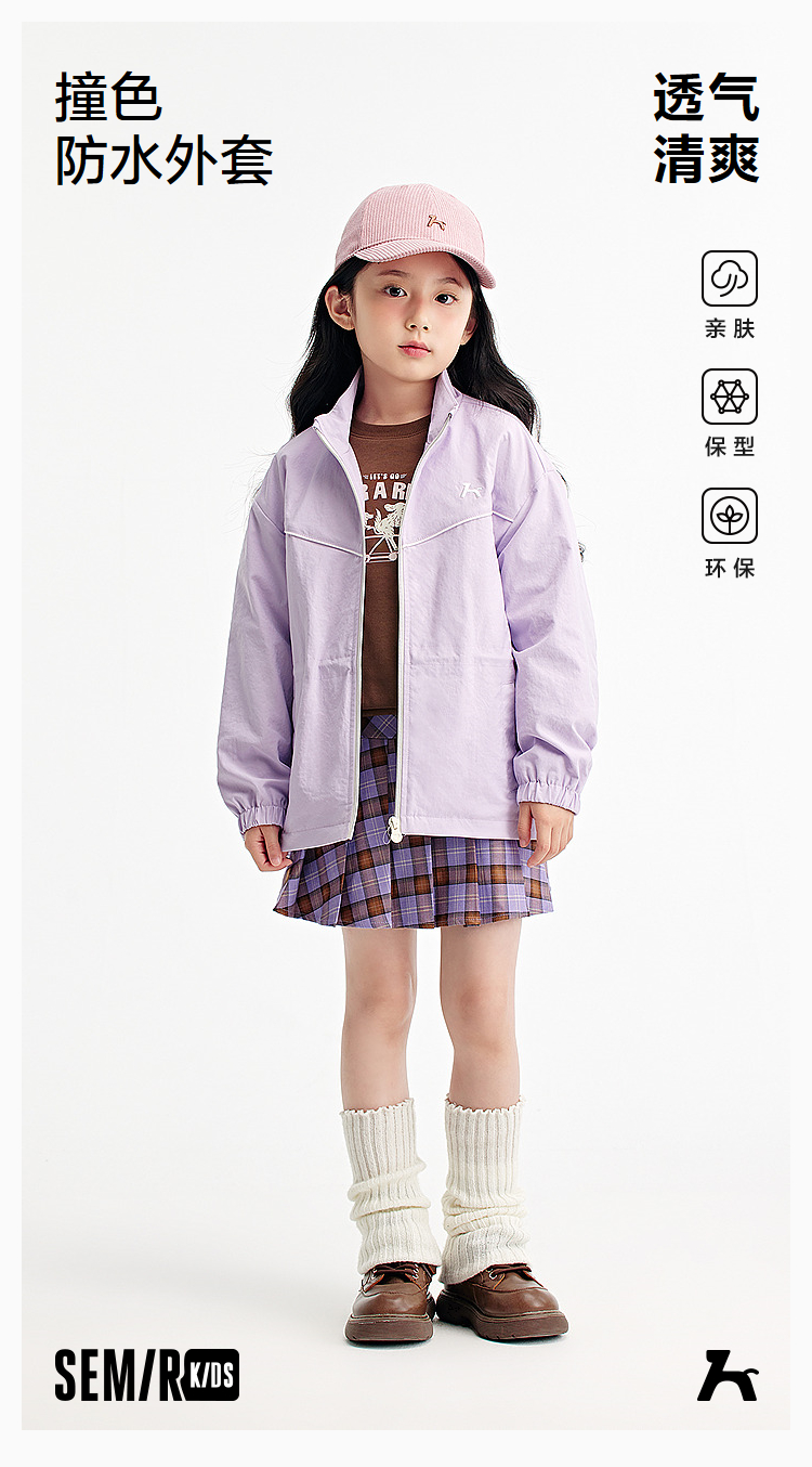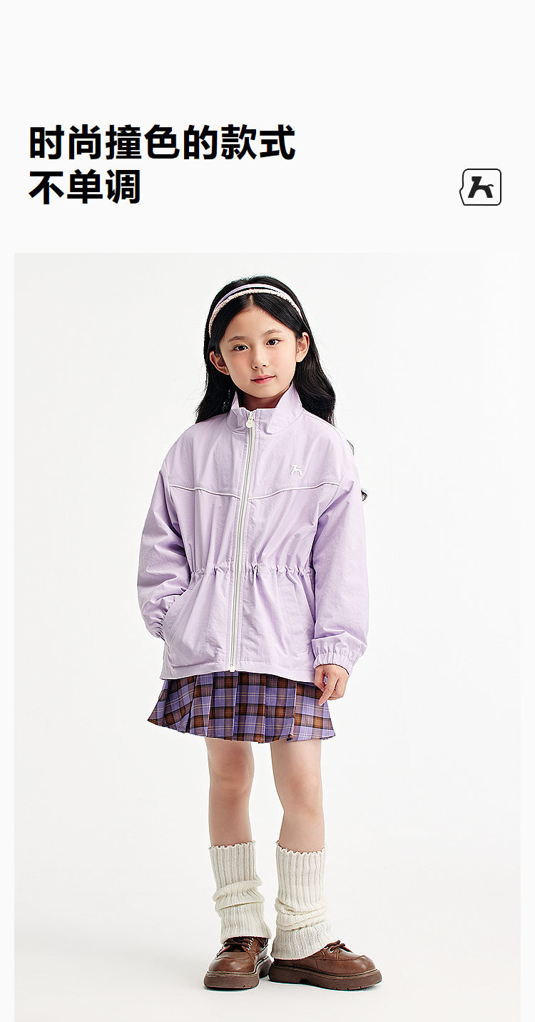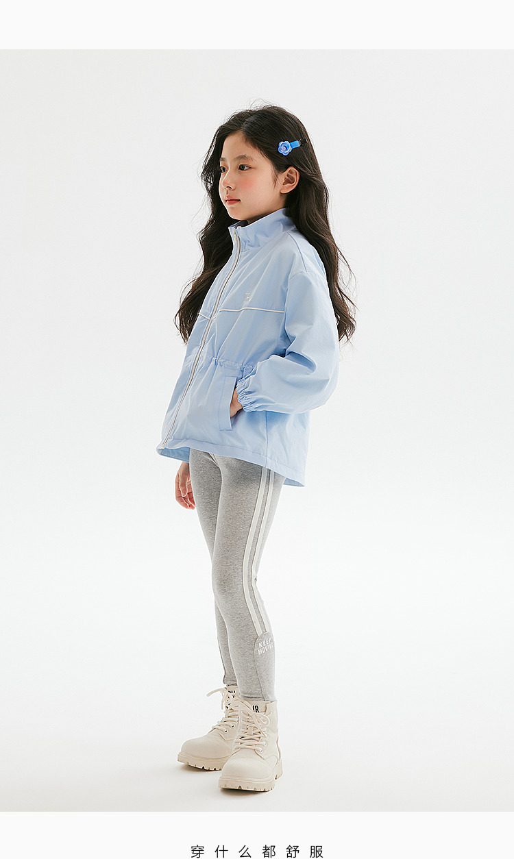 森马儿童外套春季撞色绣花宽松立领上衣女童时尚简约百搭童装休闲