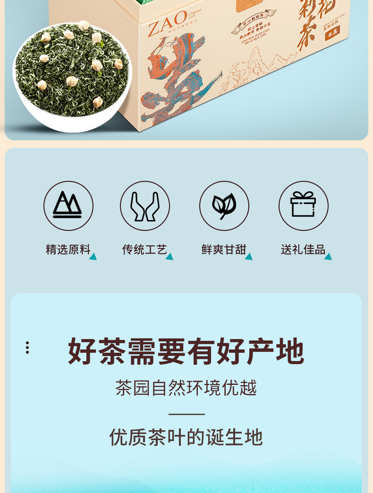 日销千件,送礼/自用🔴 芳香的茉莉茶香弥漫整个屋子 女士的最爱,健康花茶香 茉莉花茶怎么选才靠谱 好产地好原料好工艺错不了! 我给大家找的这款——朴大师茉莉花茶 “茉莉甚广,有以之编篱者,四时常花。” 横县的茉莉花茶,是公认的最正宗的。