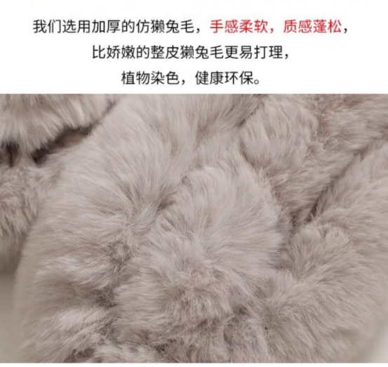 让你成为冬天里的一抹温暖阳光。 仿兔绒精致毛毛,时尚感十足,温暖您的每一个冬季