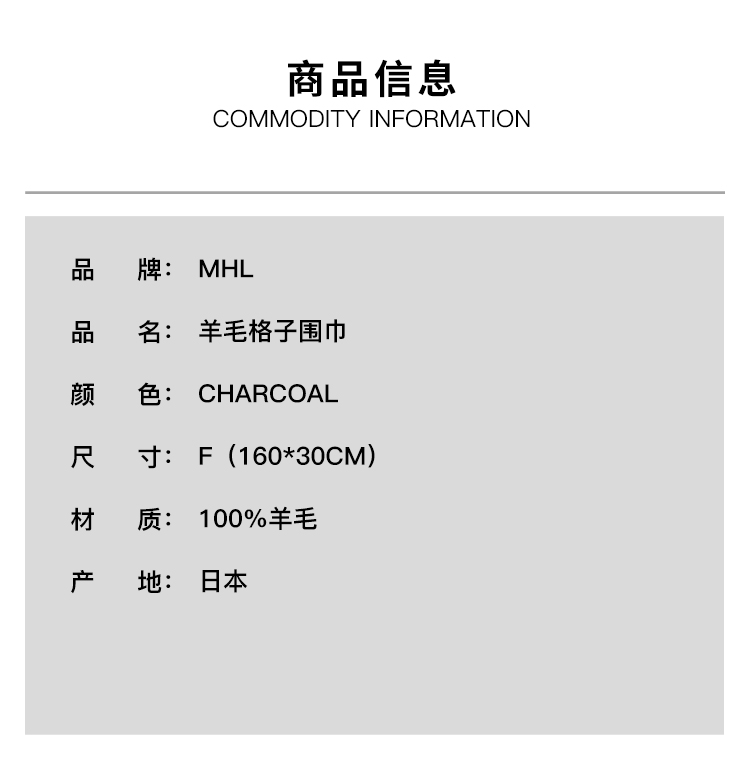 MHL CHUNKY WOOL CHECK SCARF 羊毛格子围巾