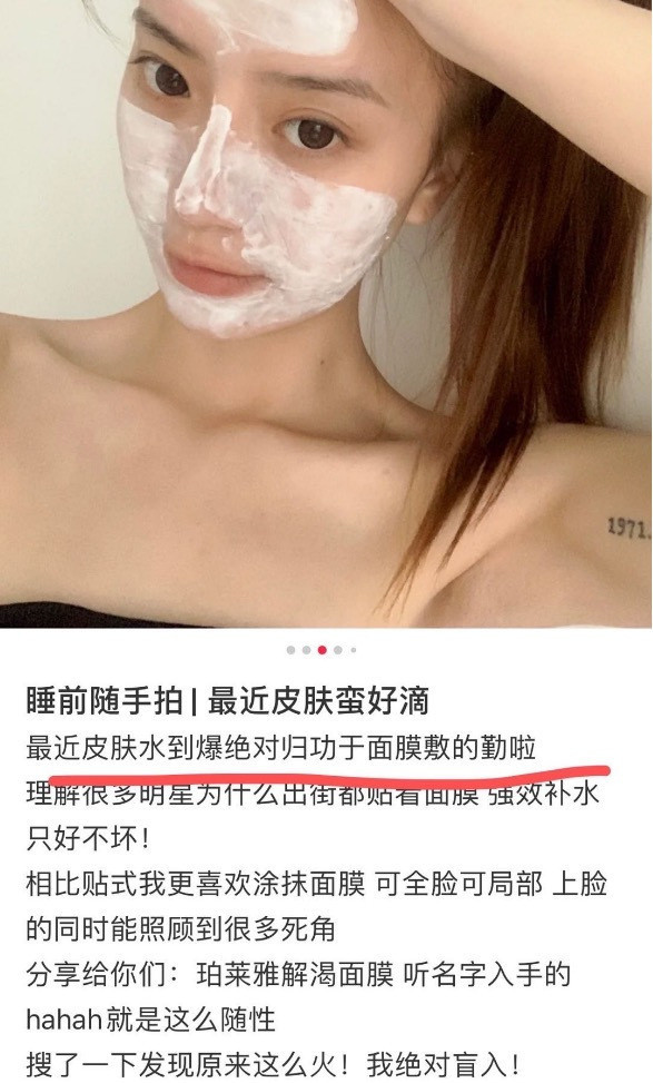 某音小某书网络红人的种草,包括明星也在小某书上种草推荐这款面膜