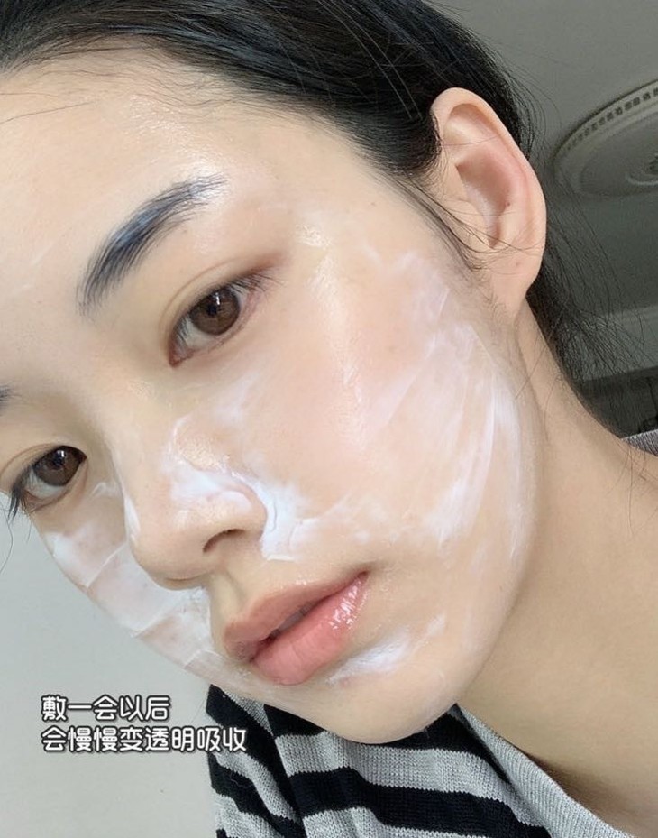质地像奶油,轻薄不厚重,软绵绵绵的,敷在脸上不会觉得黏,有冰冰凉凉的感觉,像是不停地往我的脸蛋上灌水;