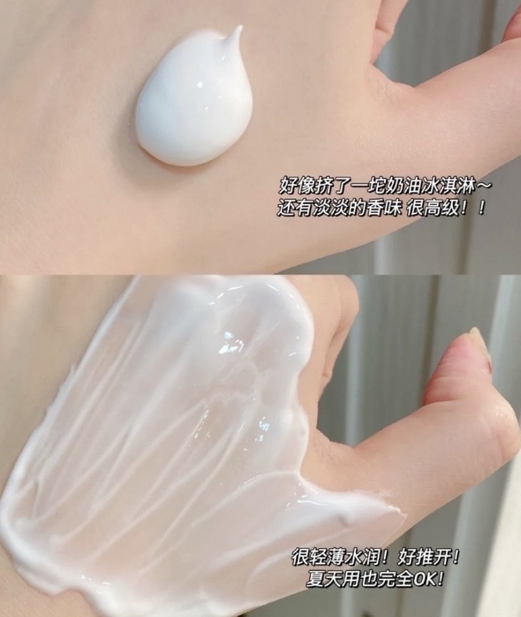 如奶油质地更加的轻薄水润,像冰淇淋融化在皮肤上一样