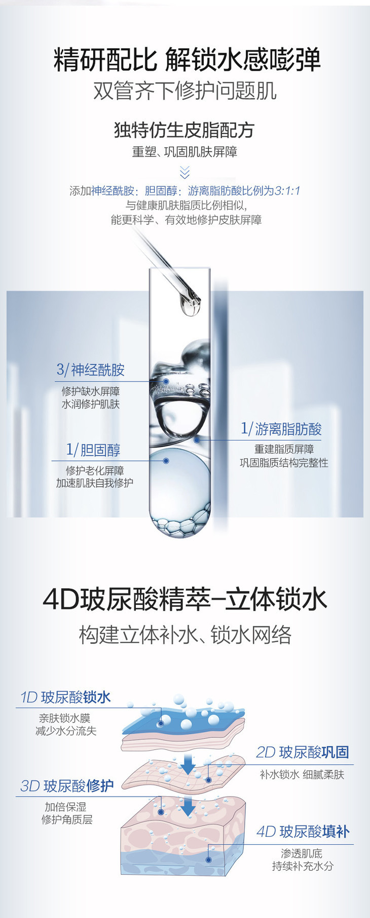 仿生皮脂配方,4D玻尿酸强韧肌肤屏障