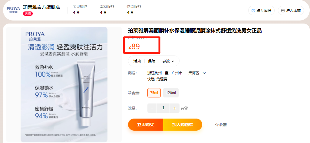 旗舰店销量月销近一万+,看下官网旗舰店价格,日常¥89/支