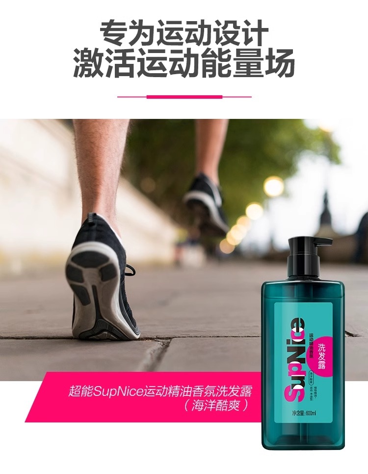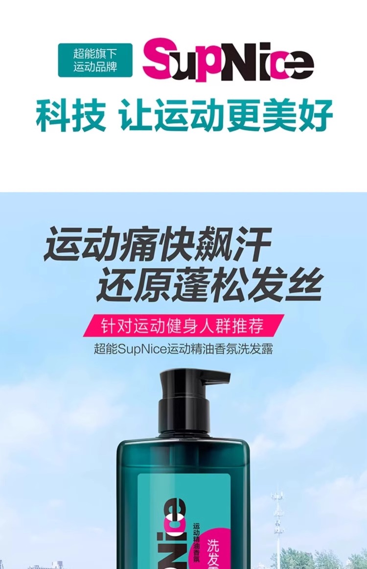 超能supnice洗发水沐浴露600ml(海洋酷爽)家用实惠装运动精油香氛洗发露