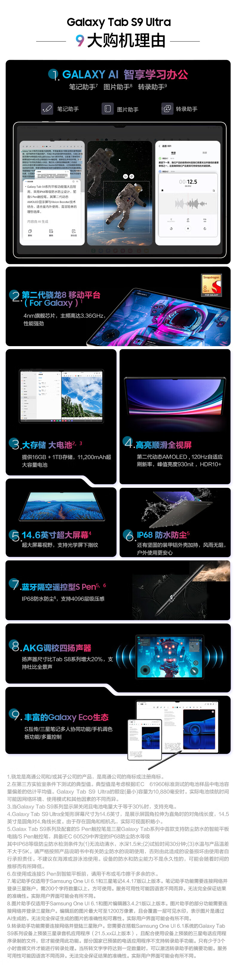 三星(Samsung)S9 Ultra 14.6英寸平板电脑/AI智享学习办公/骁龙8Gen2/含Spen 12G+256GB 云影灰WIFI