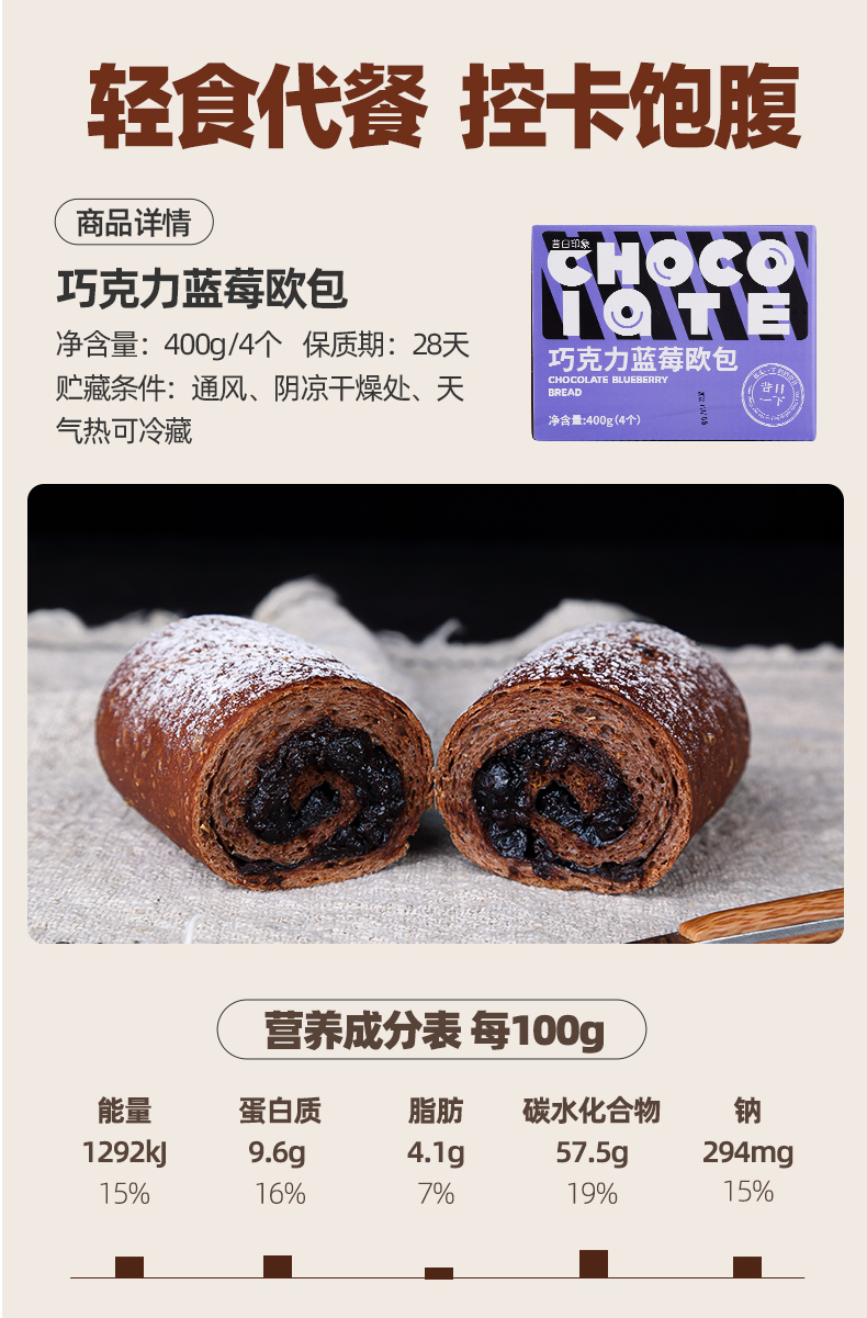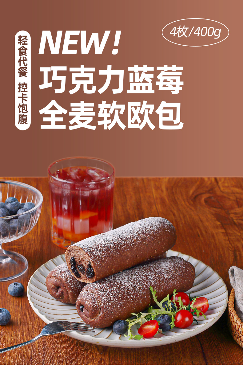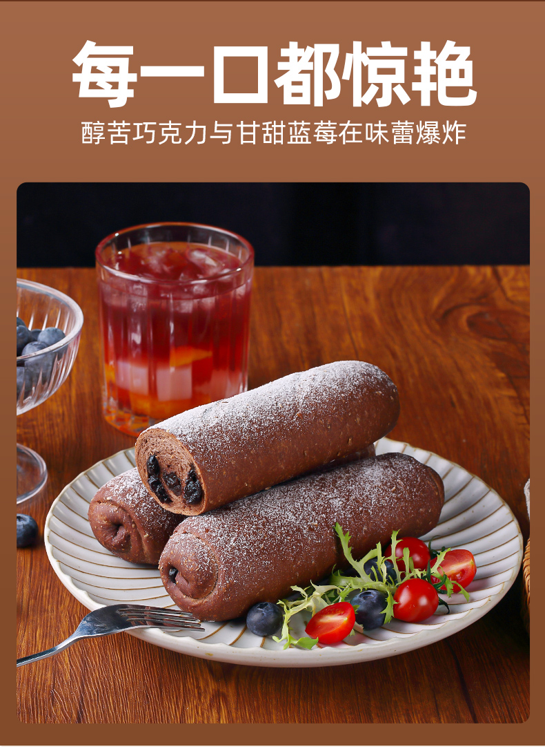 全麦欧包巧克力蓝莓欧包健康休闲小吃零食低脂粗粮早代餐面包