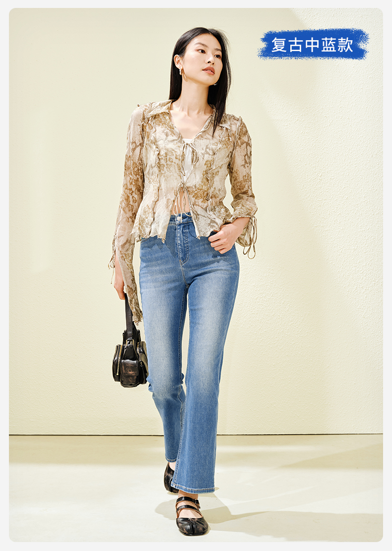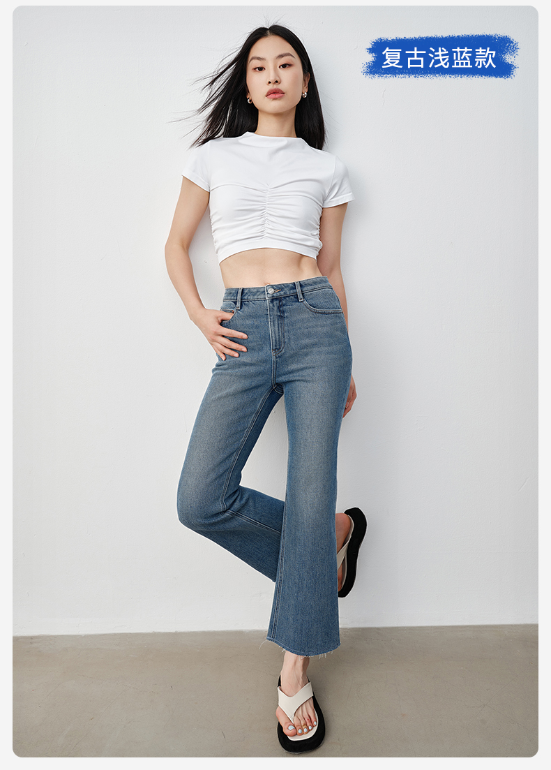 【九分喇叭】simplepieces春秋款SPS牛仔裤女小个子高腰修身微喇