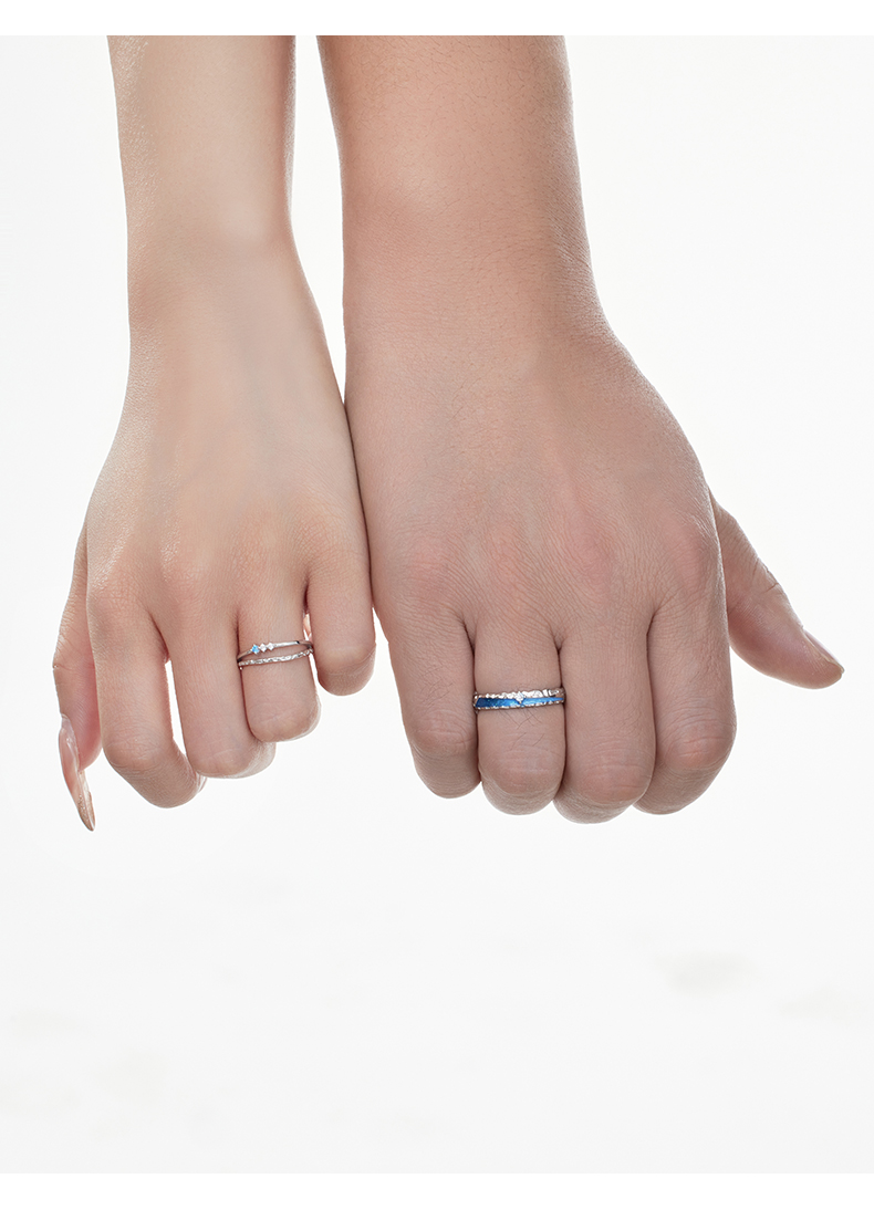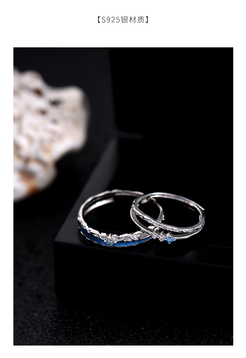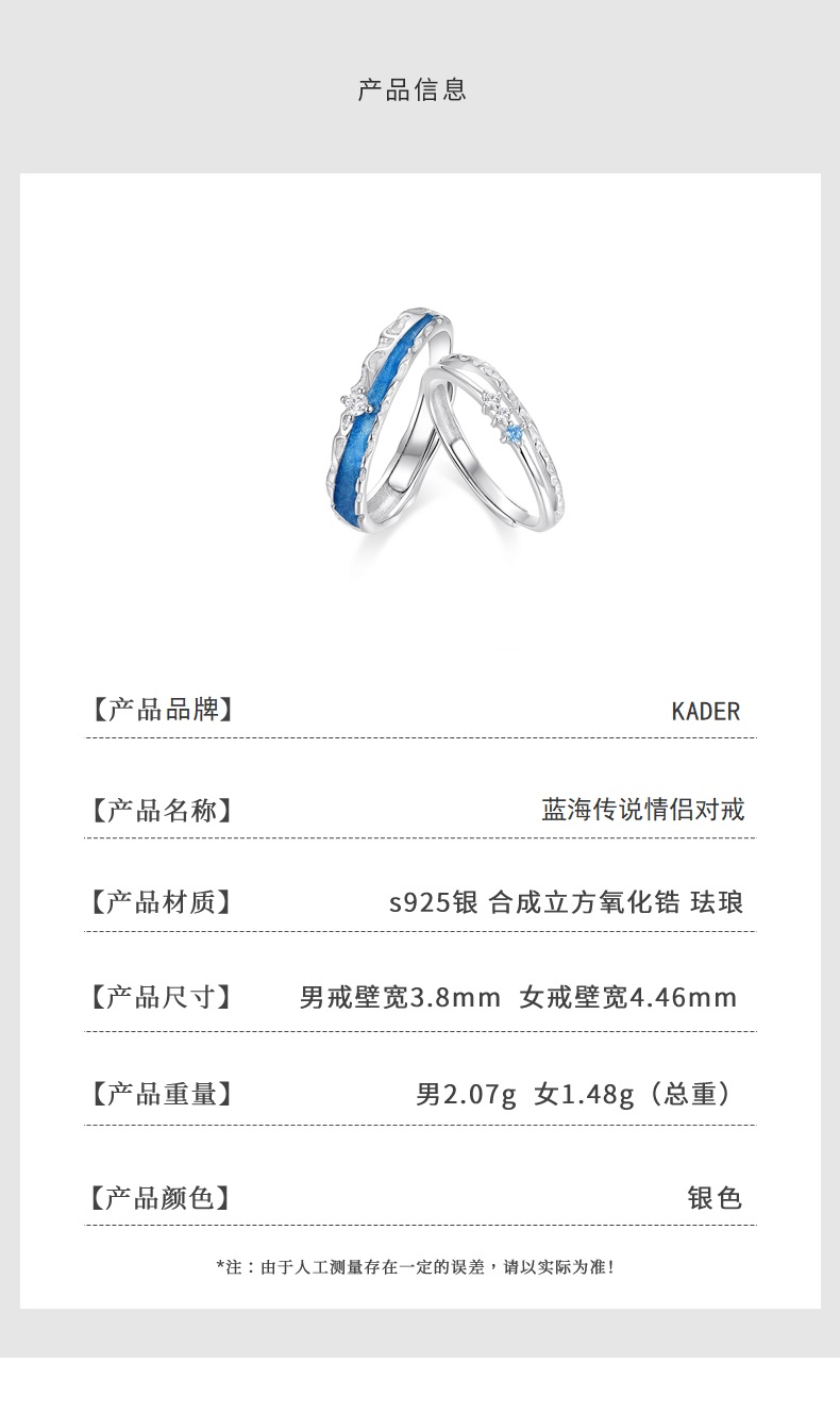 卡蒂罗/KADER 蓝海传说情侣对戒 925银克莱因蓝小众不规则设计开口可调节一对 浪漫520恋爱频率配饰 礼盒款