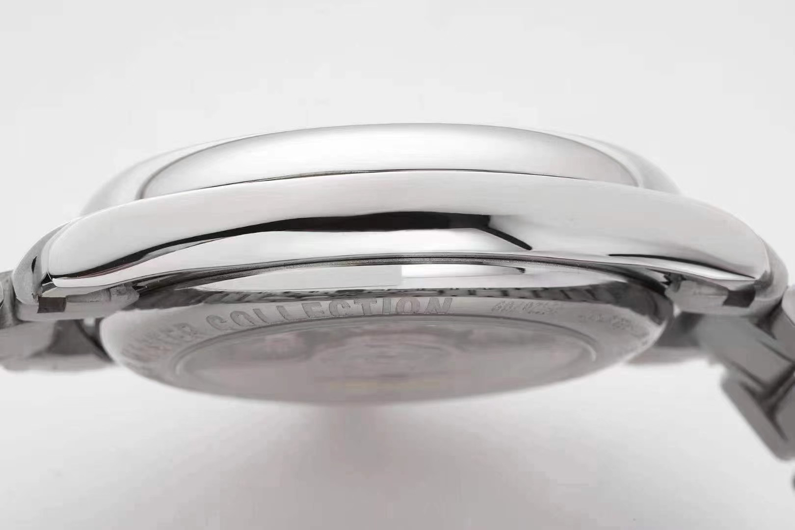 1.腕表尺寸40X12毫米。GS不放过任何细节,一丝不苟的还原名匠系列表壳独特的优雅精髓,让佩戴者在佩戴过程中既贴手,且舒适。