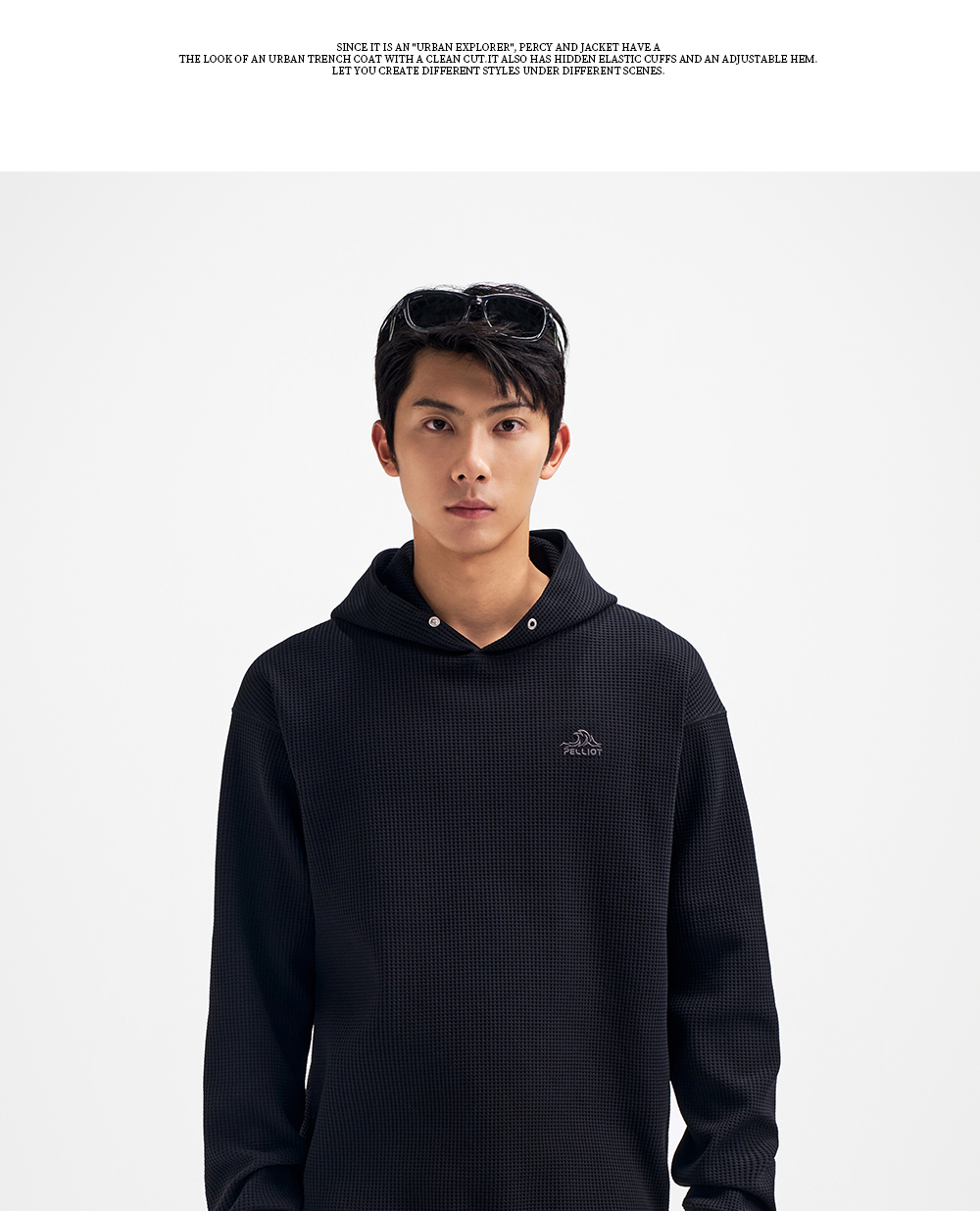 【山系】伯希和户外长袖T恤男女同款亲肤透气连帽卫衣华夫格上衣