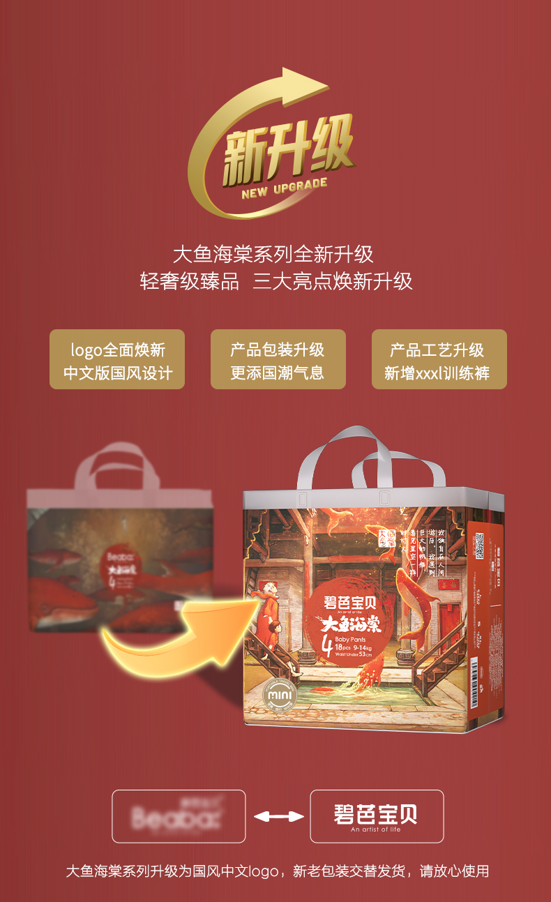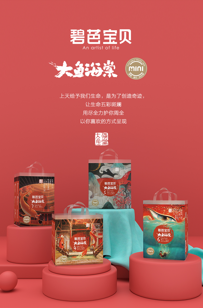 【碧芭爆款尝鲜组合】碧芭宝贝大鱼海棠mini装+盛夏Pro便携装纸尿裤拉拉裤3包组合