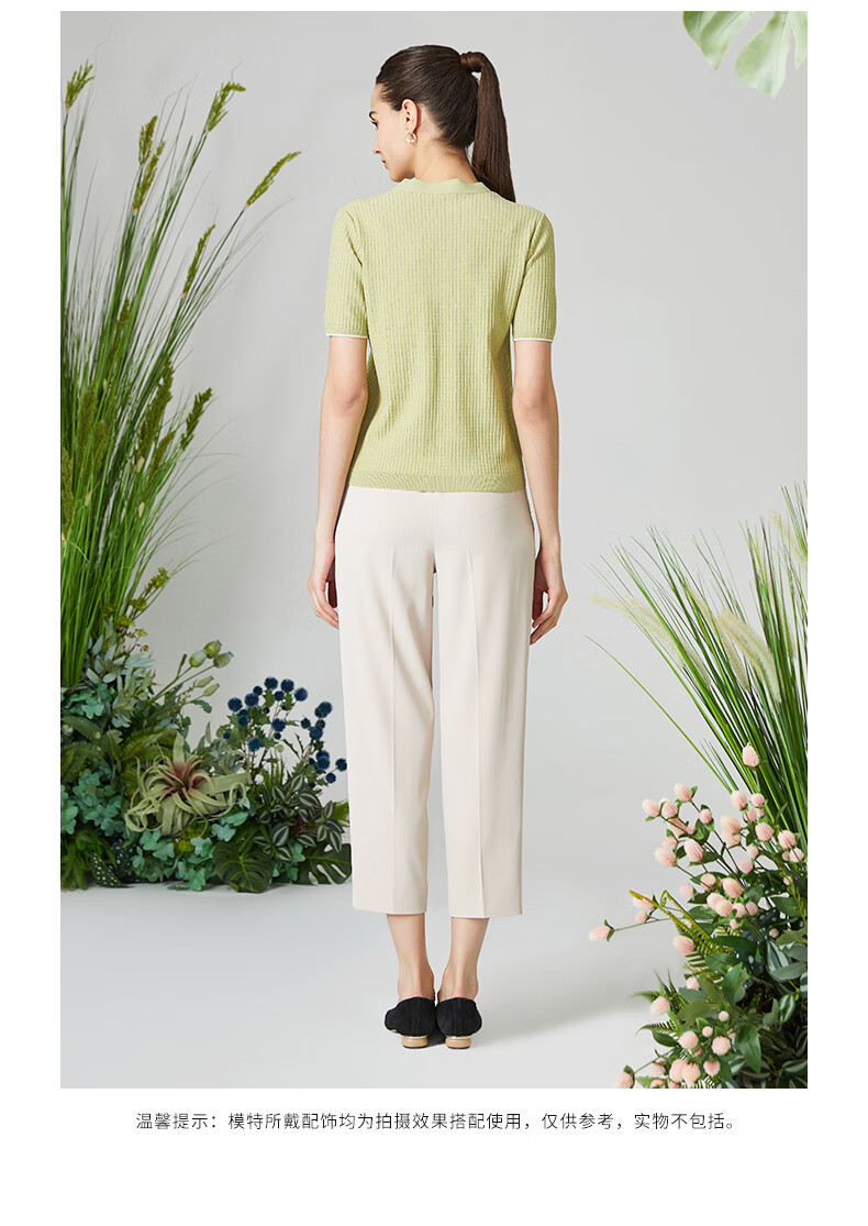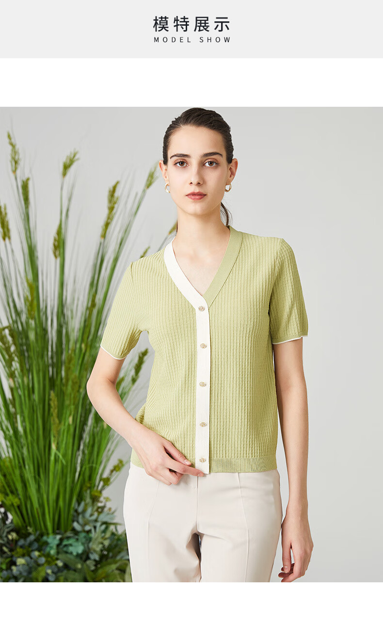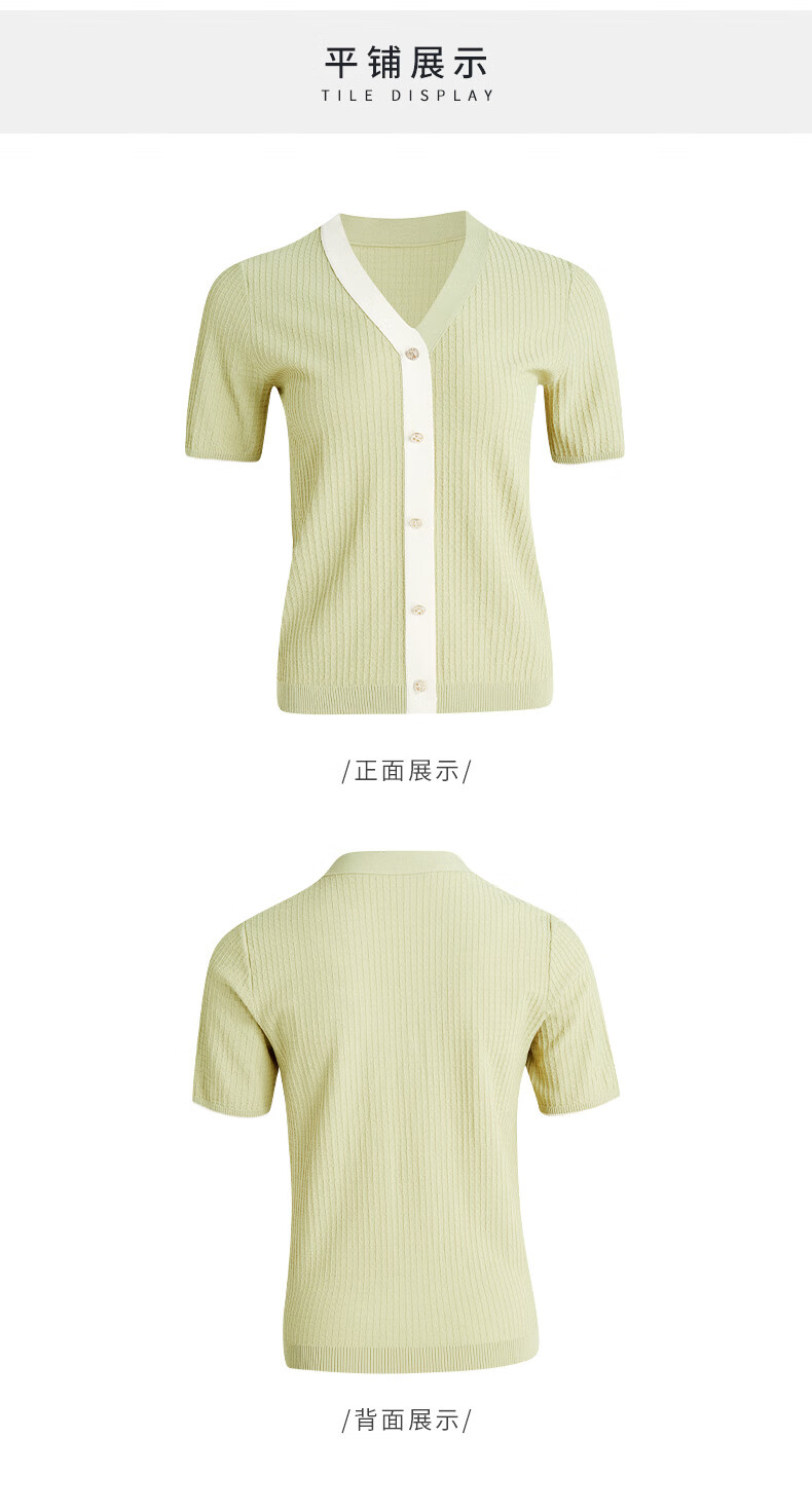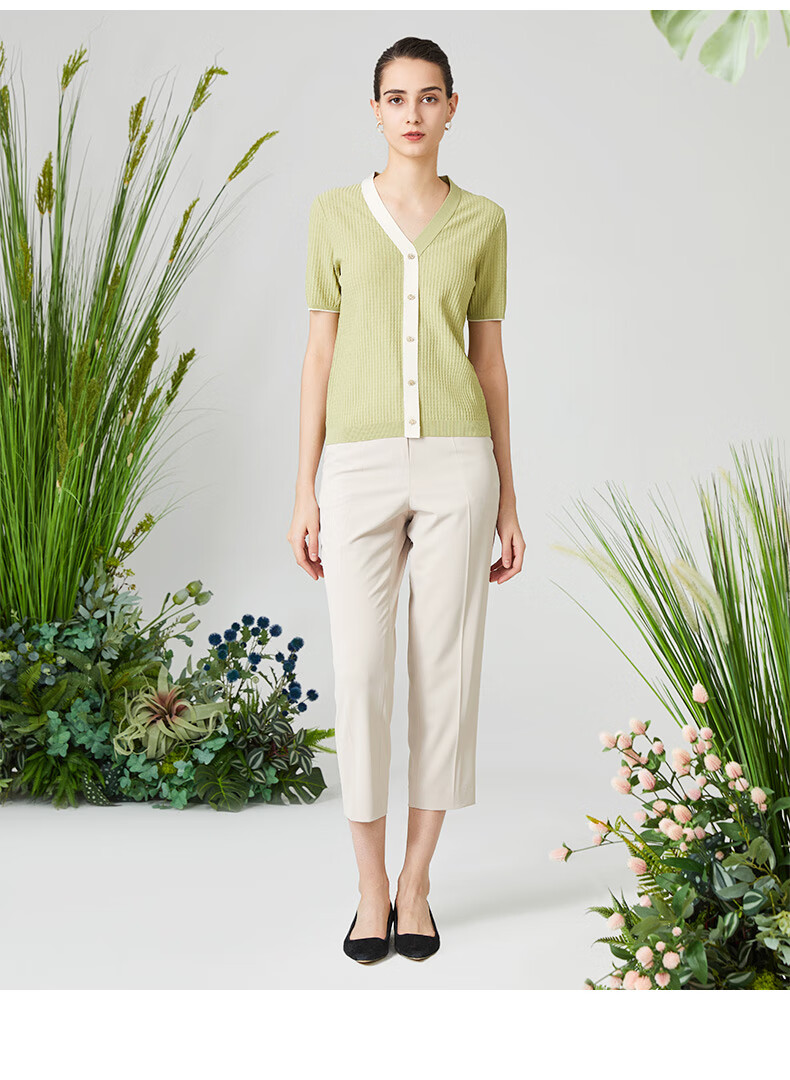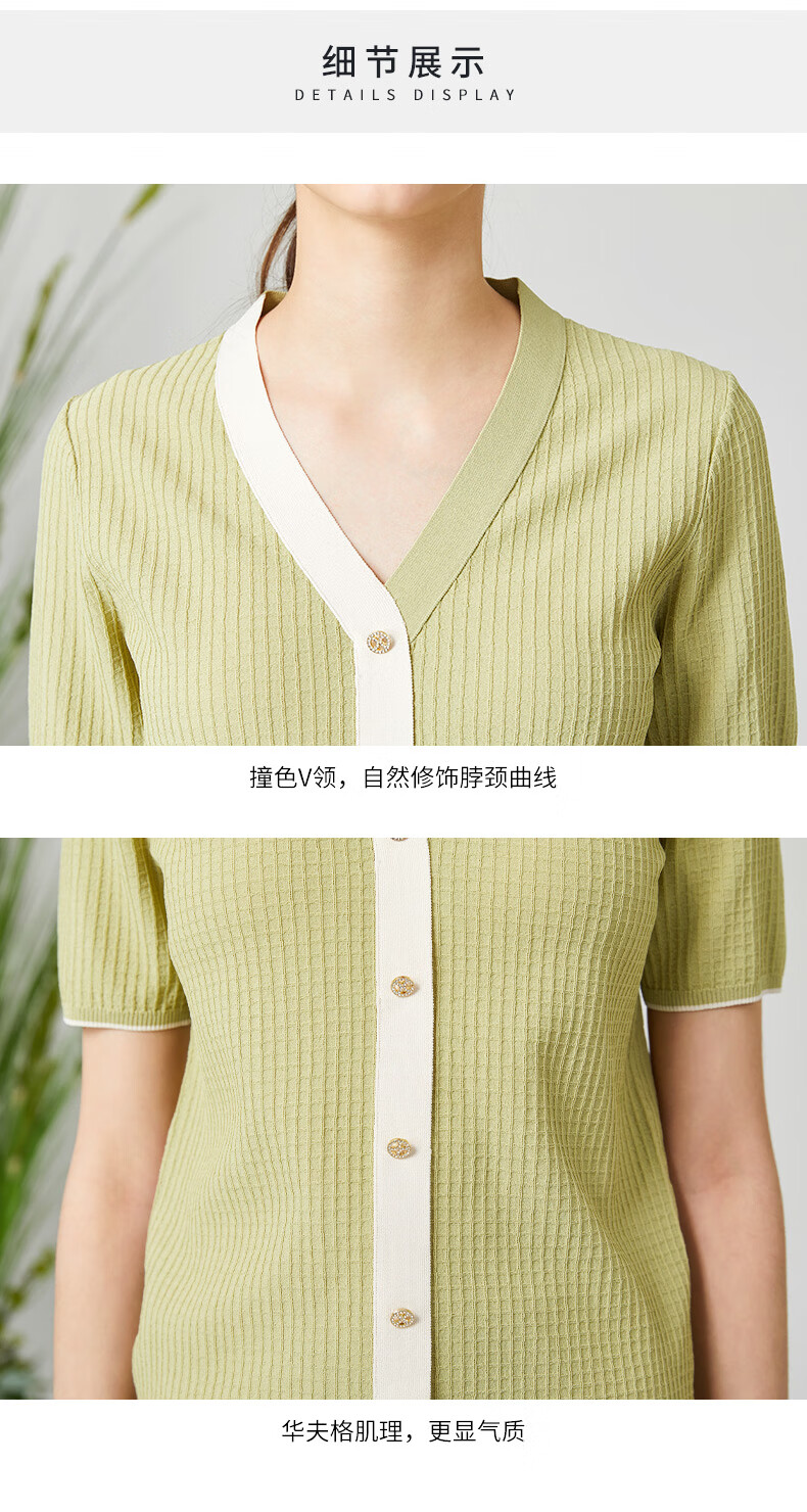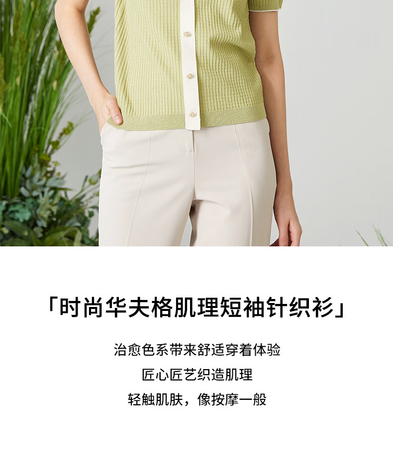 皮尔卡丹女装针织衫短袖华夫格气质通勤百搭针织开衫P3299K3252G1