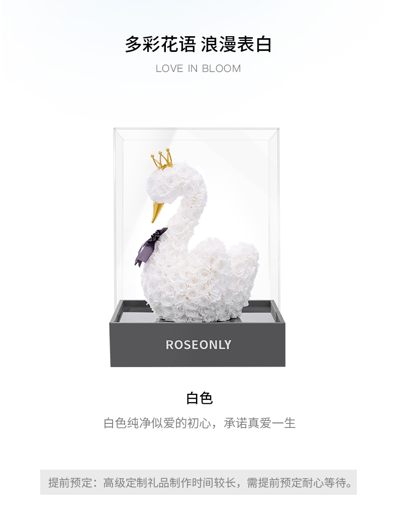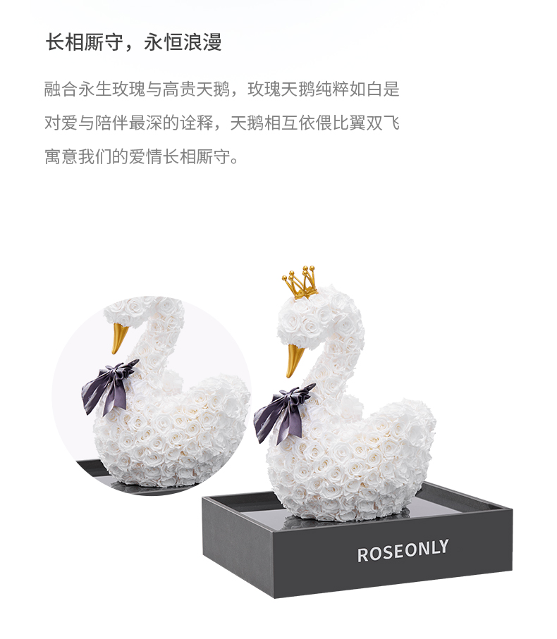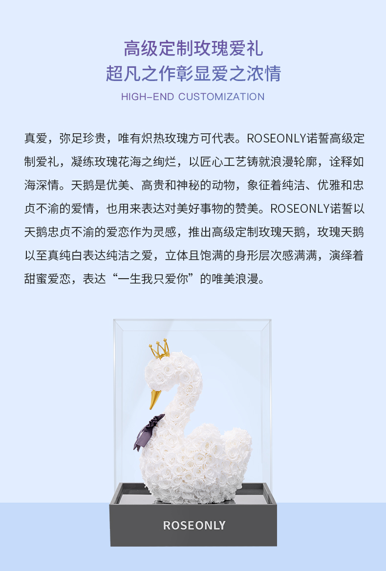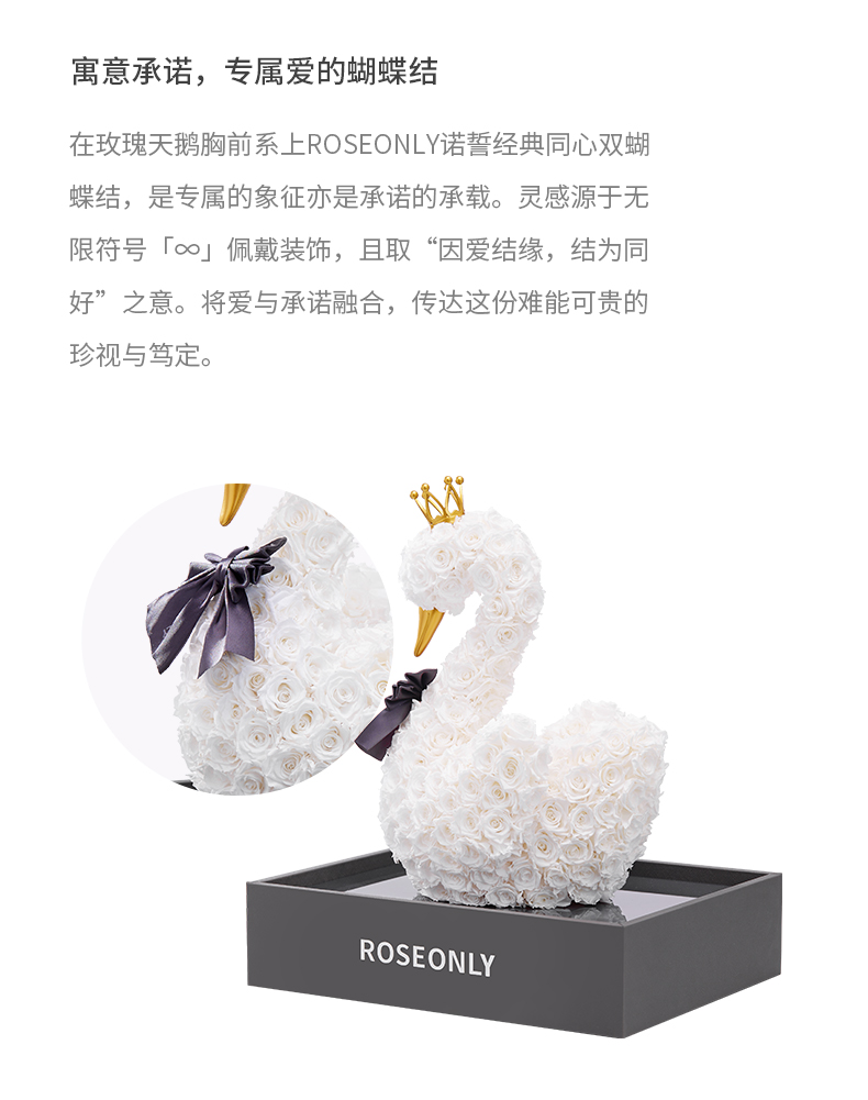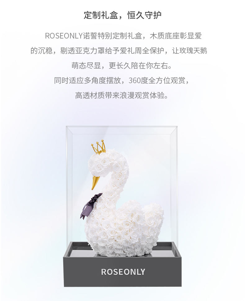 ROSEONLY诺誓 高端定制 永生玫瑰 公仔系列 玫瑰天鹅 送朋友 情人节礼物