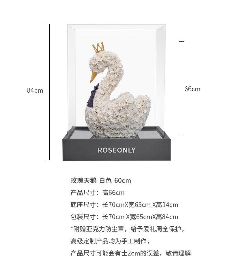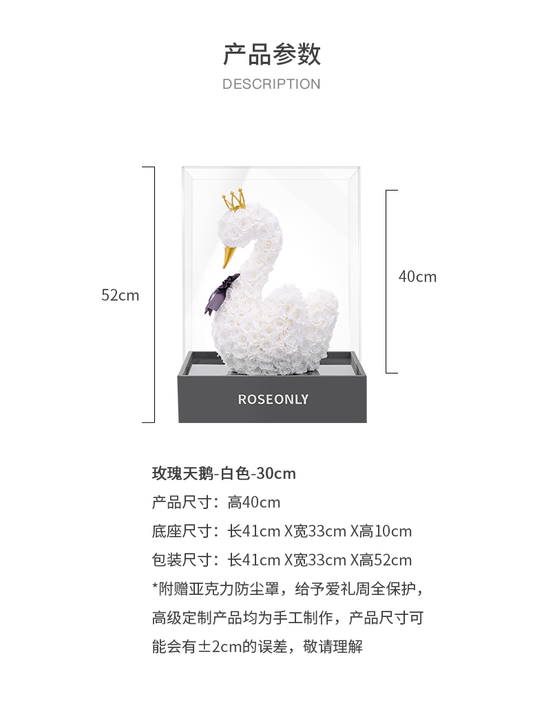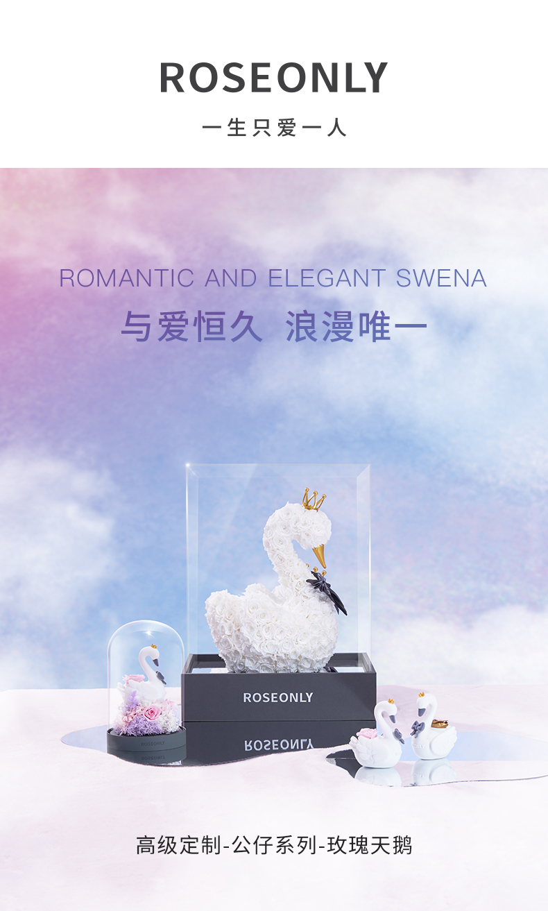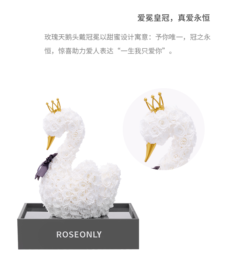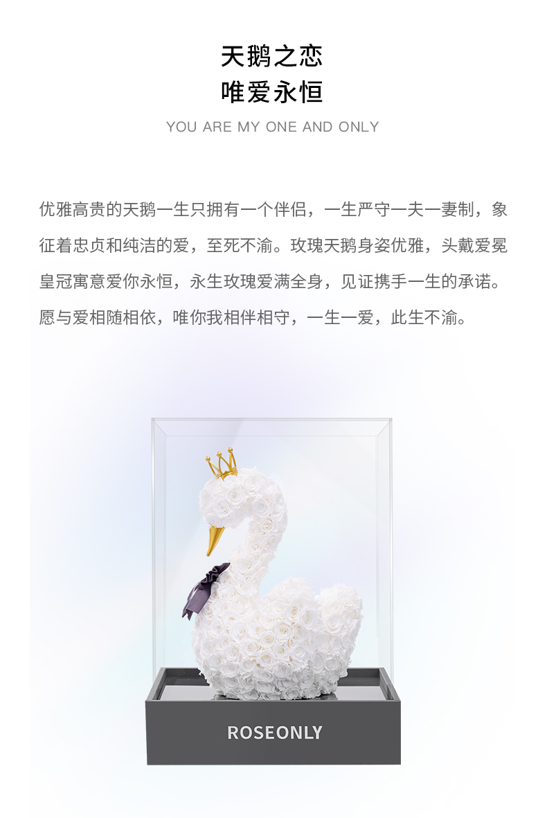 ROSEONLY诺誓 高端定制 永生玫瑰 公仔系列 玫瑰天鹅 送朋友 情人节礼物
