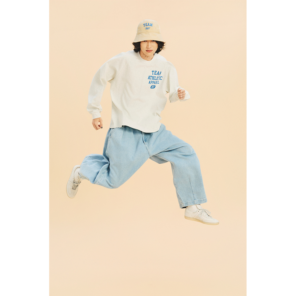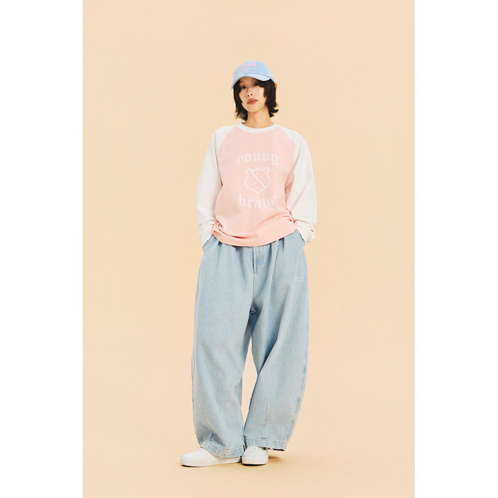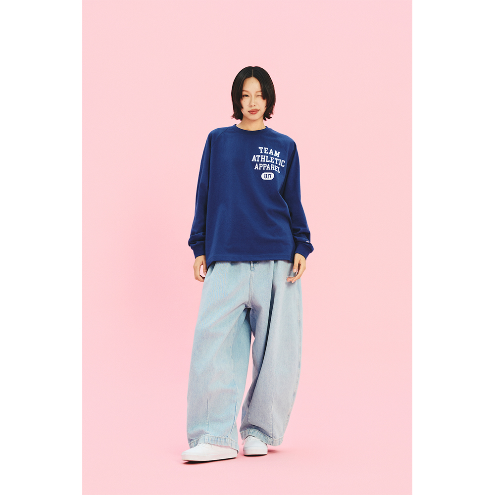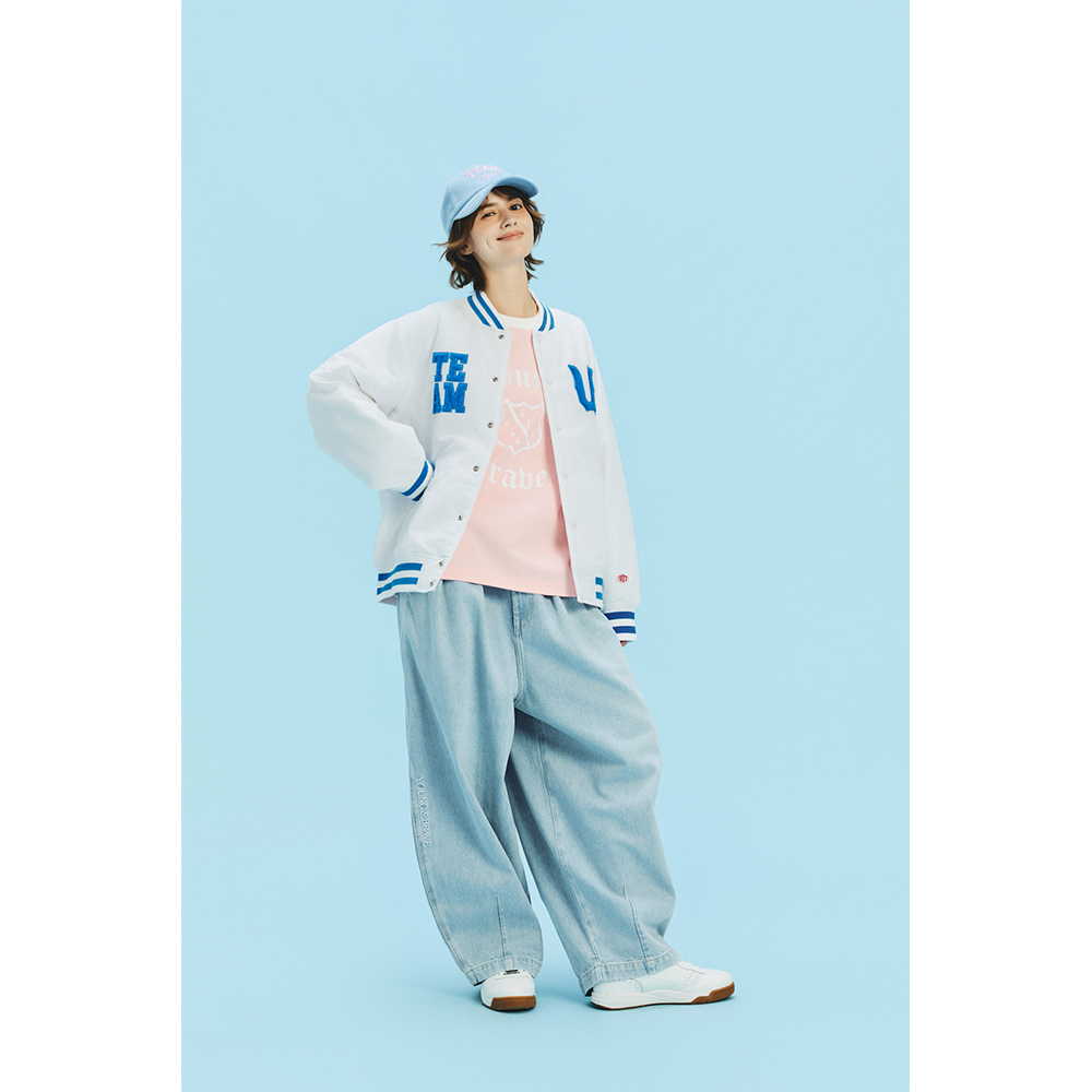 U17 绣花洗水牛仔气球裤