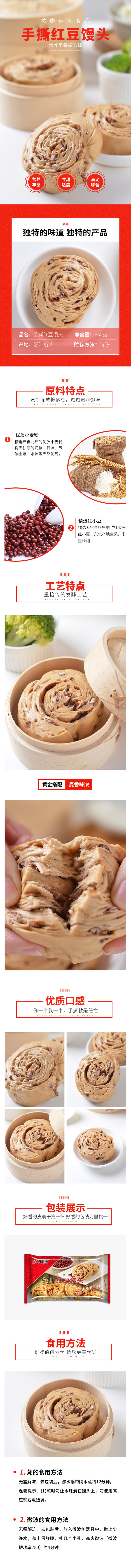 【包邮套餐】祐康360g手撕红豆馒头*3包