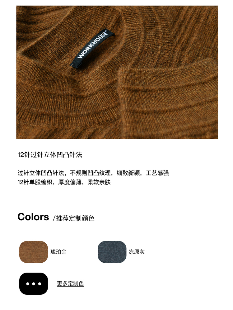 男士2021新款纯山羊绒双股暗纹小桩领套头衫