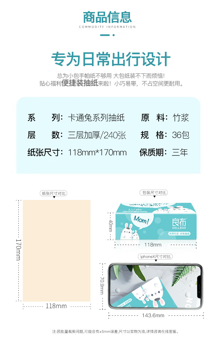良布(DELLBOO)良布卡通兔系列软抽80抽*36包箱装LTR80E36P
