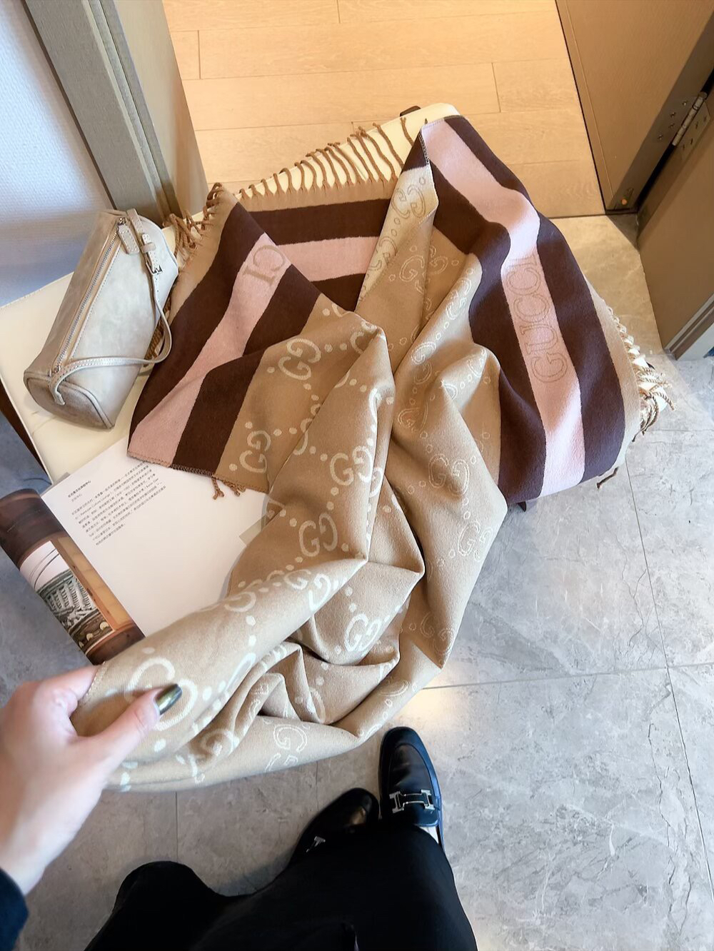 秋冬特惠💰150 古驰围巾 GG提花logo的设计使这款围巾呈现出了非凡的气质,围巾正反两面运用不同配色的对比效果,彰显高贵典雅的气息!此款羊毛围巾采用经典的GG图案,羊毛质感柔滑。围巾颜色抢眼,在带来舒适呵护的同时给整体造型增添亮色。Gucci 万年经典款 GG图案中的经典王 配有流苏饰边的精致双面提花羊毛围巾,饰有品牌标志性的GG图案。规格:65*180cm 羊毛