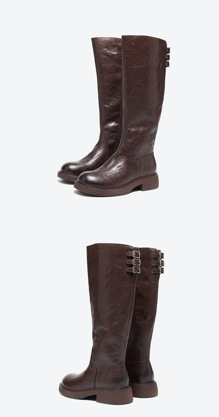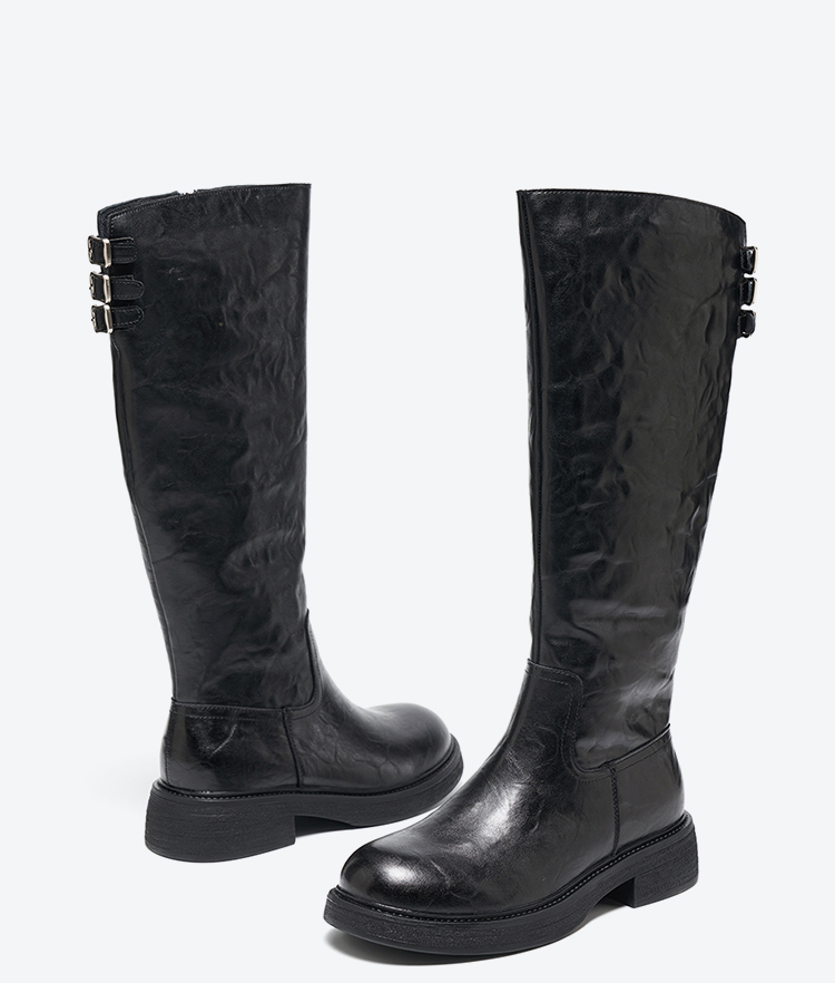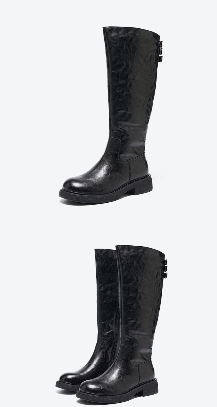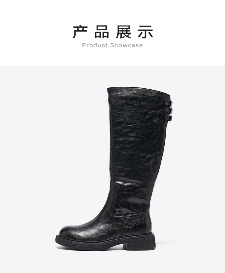 【绒里可选】星期六朋克时髦褶皱设计百搭长筒靴SSD4117560/SSD4119560
