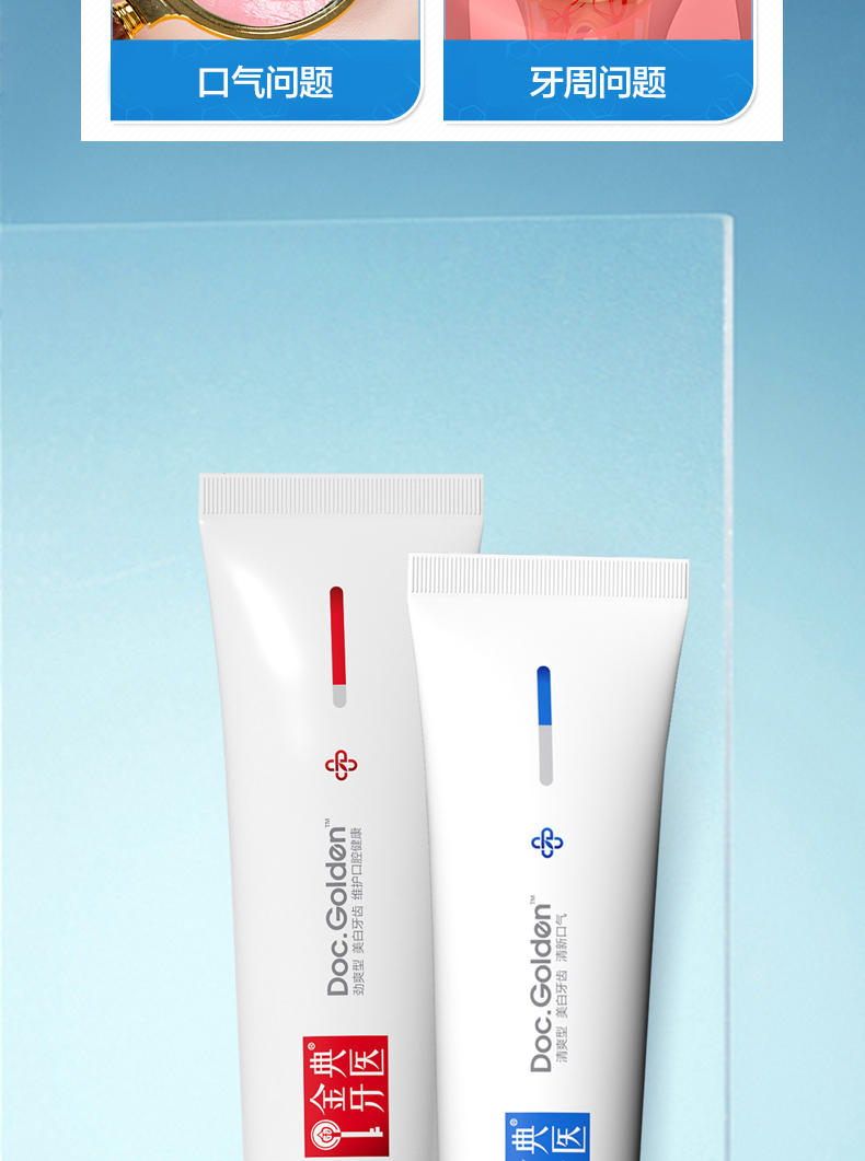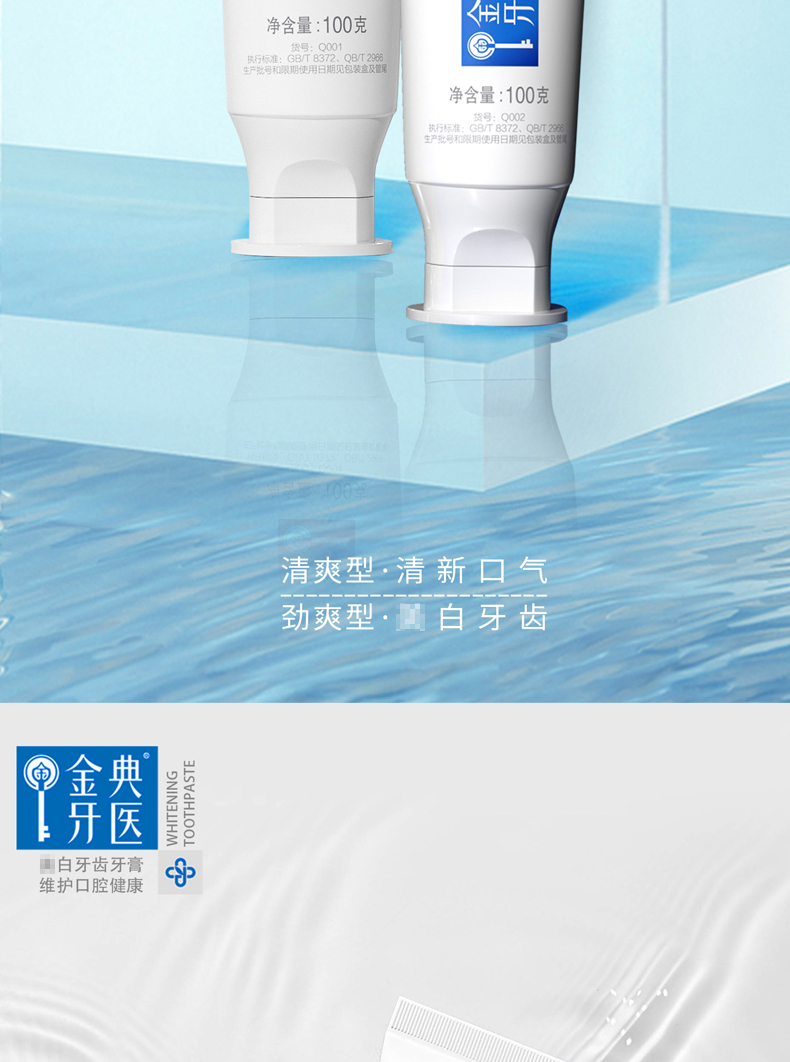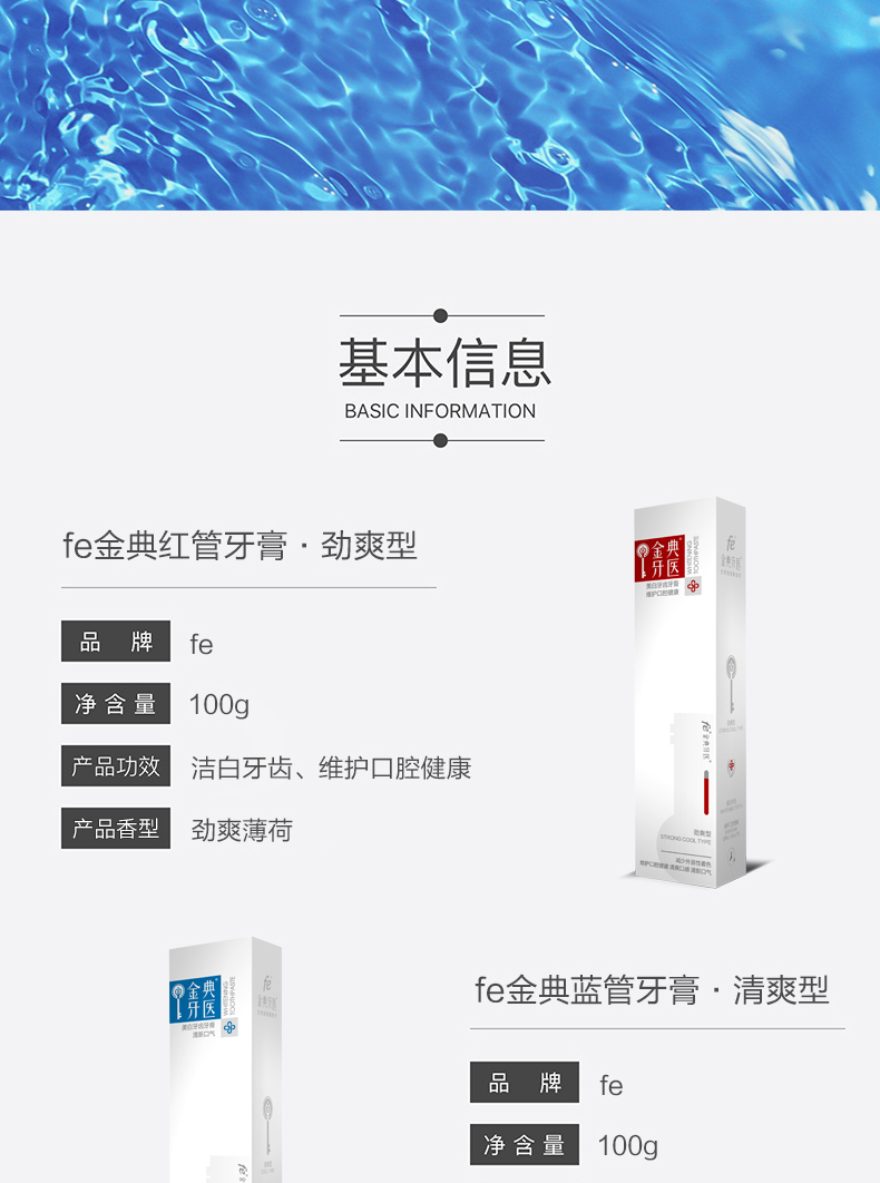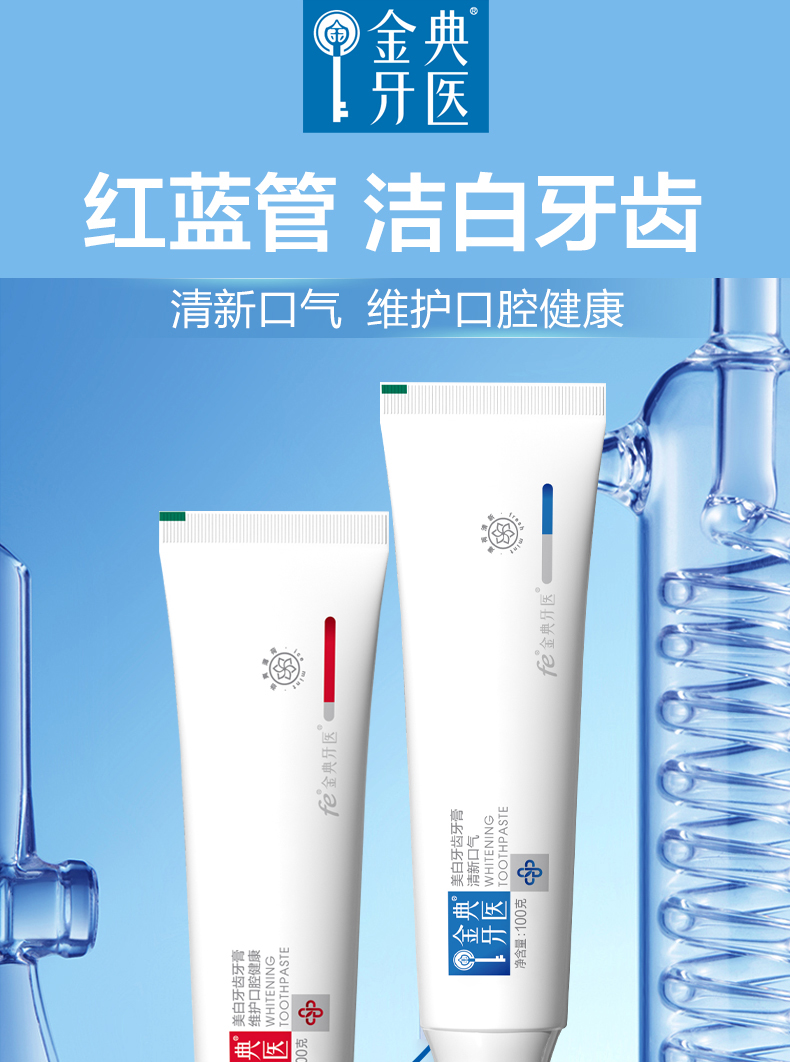 fe金典洁白牙膏100g 生物酶亮白牙齿去黄去牙渍口气清新成人牙膏【红款劲爽型】+【蓝款清爽型】Q001+Q002
