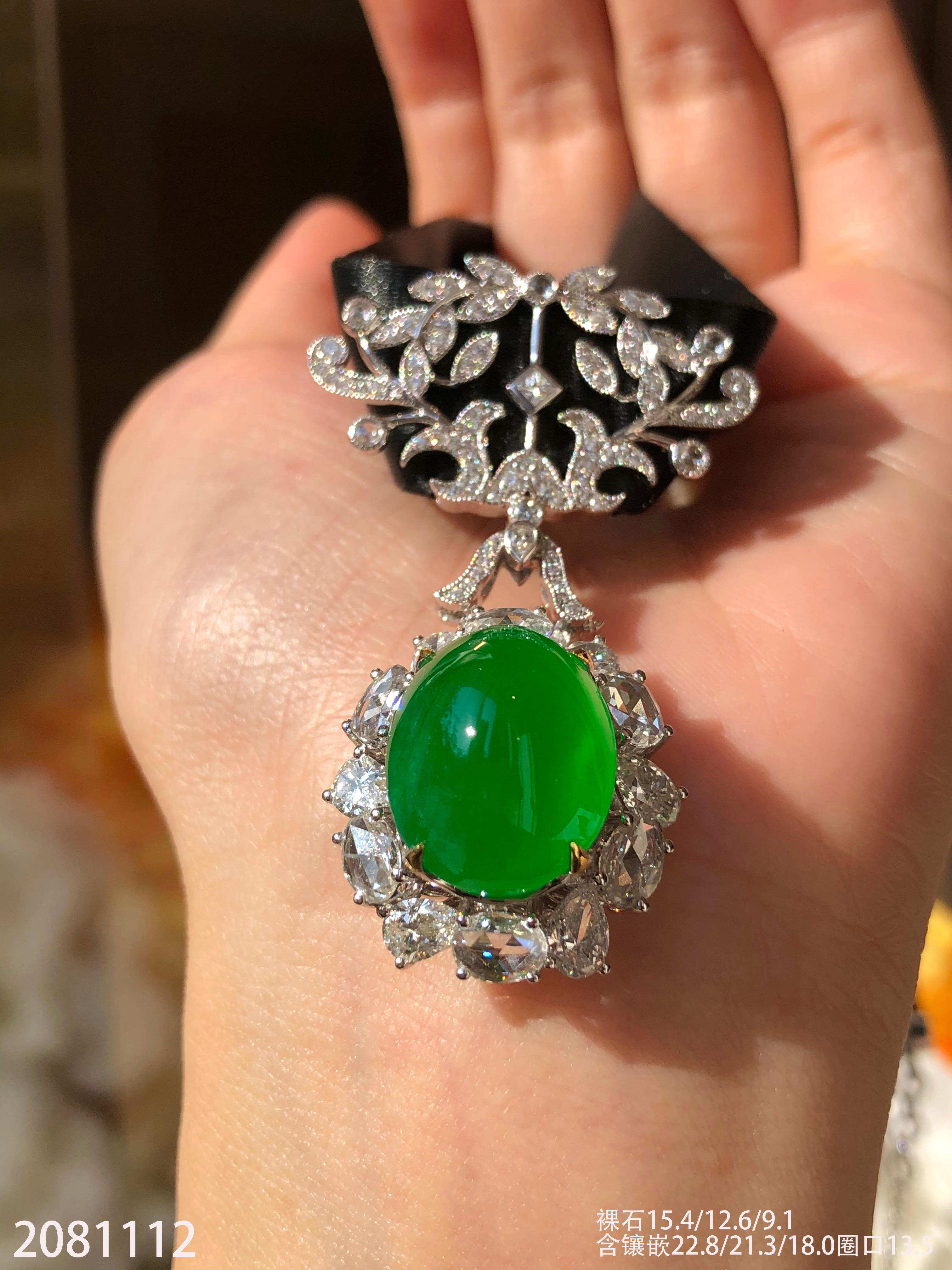 高冰艳绿蛋面戒指吊坠两用款【2081112】具体价格微信咨询