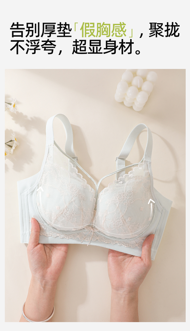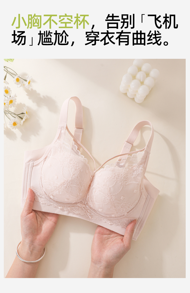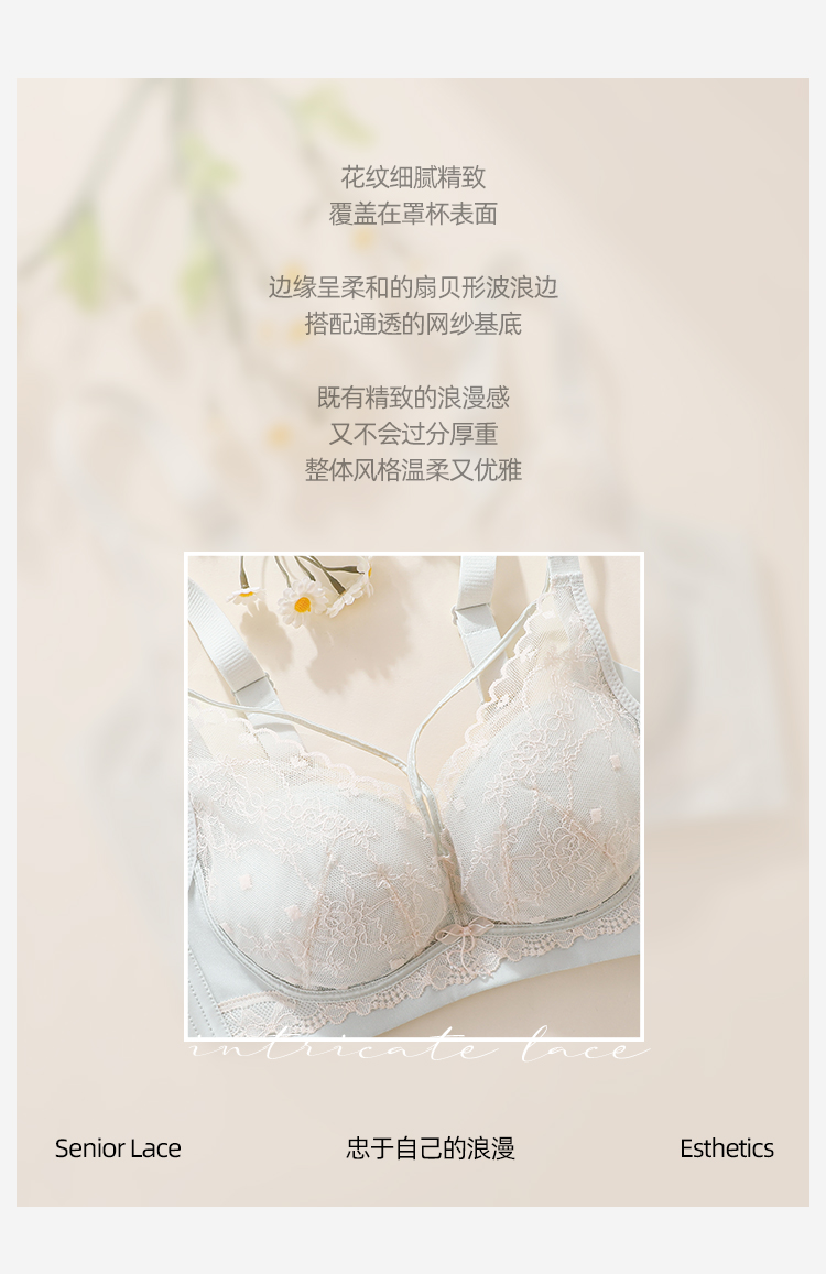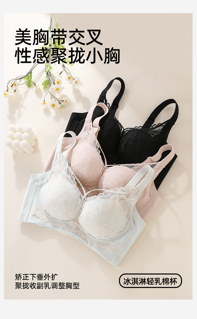 熳洁儿 轻乳棉小胸聚拢显大文胸性感交叉美胸法式蕾丝内衣冰淇淋色系26261512