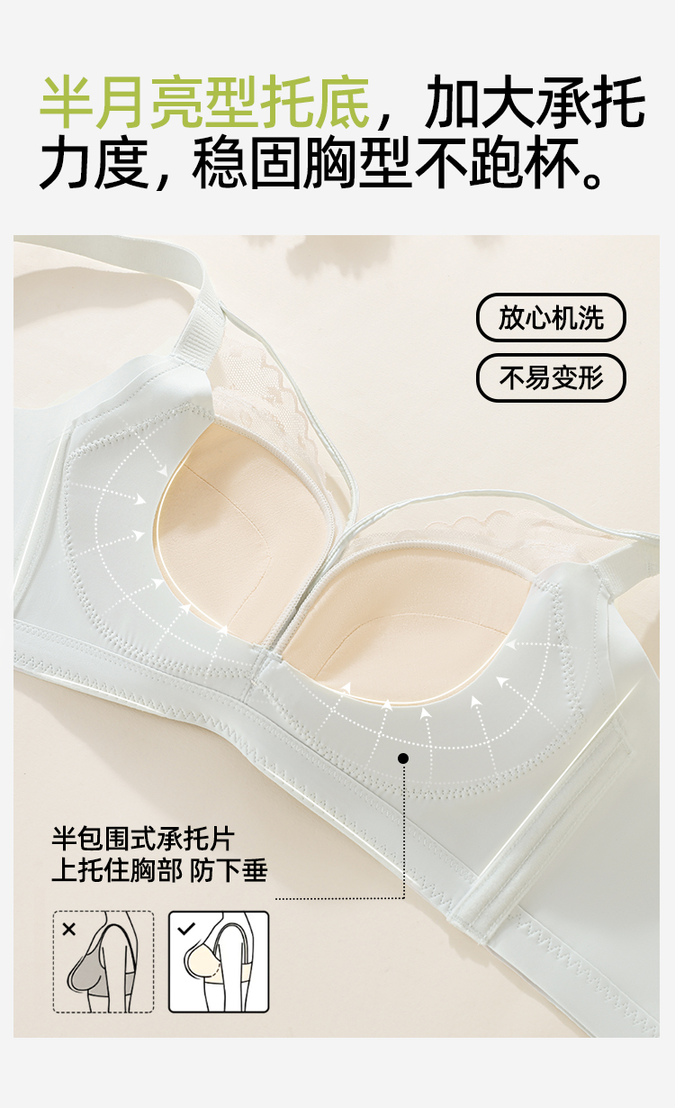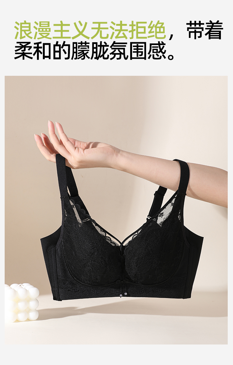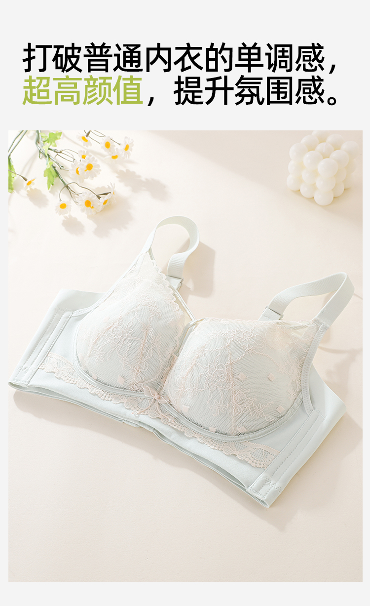 熳洁儿 轻乳棉小胸聚拢显大文胸性感交叉美胸法式蕾丝内衣冰淇淋色系26261512