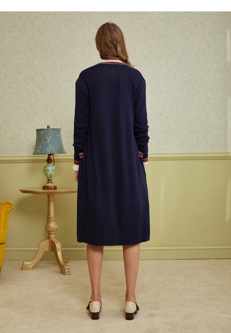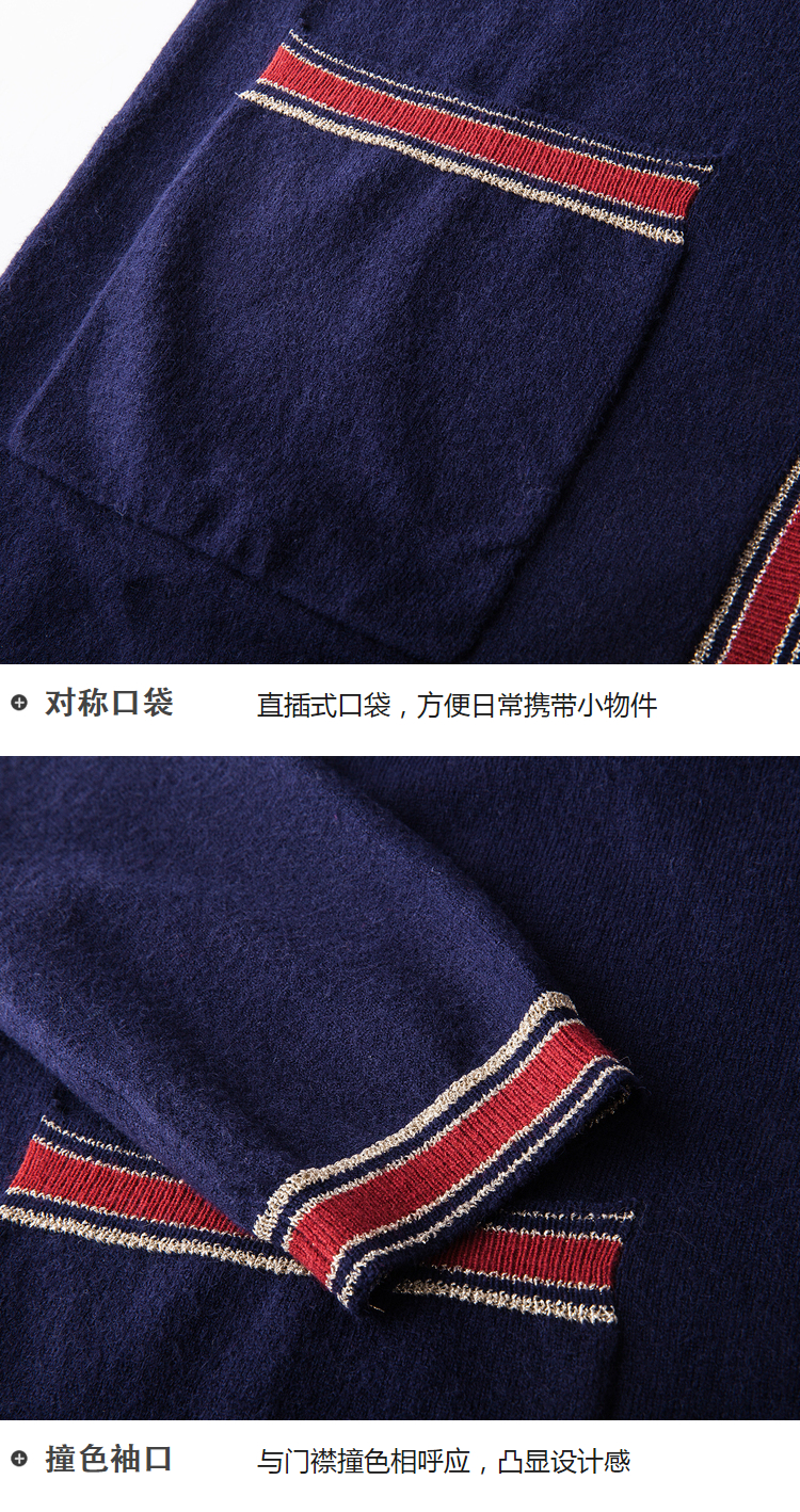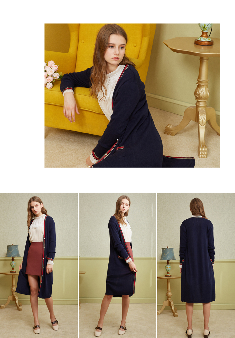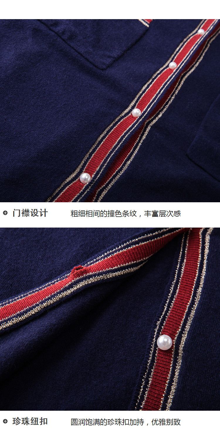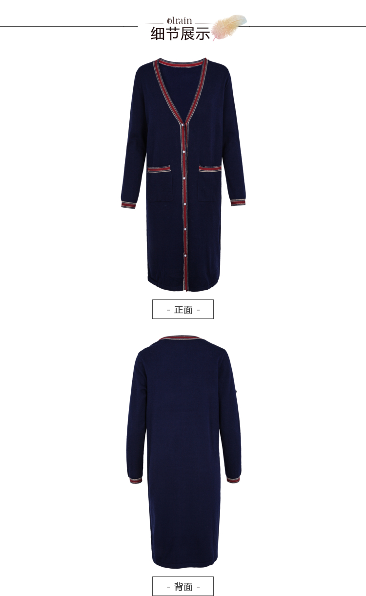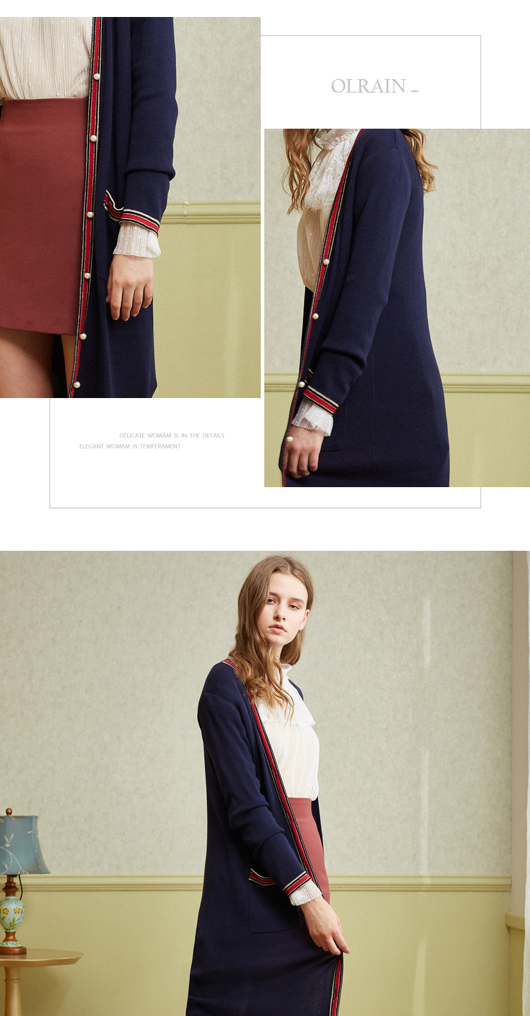 欧芮儿2018秋新款宽松撞色条纹开衫外套长袖毛针织衫女中长款⑦