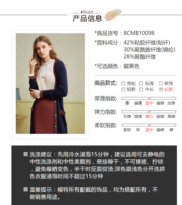 “精致”是欧芮儿olrain品牌文化的核心,欧芮儿认为,精致的女人,不但要外在动人,更要内在迷人,内外兼修,有魅力、有气质、有内涵,自信而不自傲,优雅而不矫揉,自有万种风情而不轻浮,更不故作矜持。