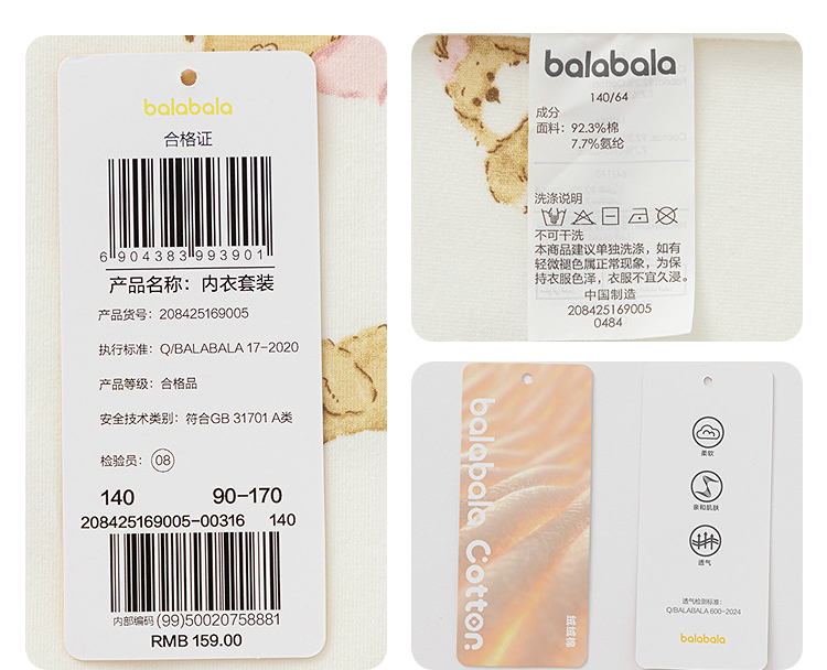 巴拉巴拉balaOne女童内衣套装儿童2件套新款童装2025秋冬舒适亲肤