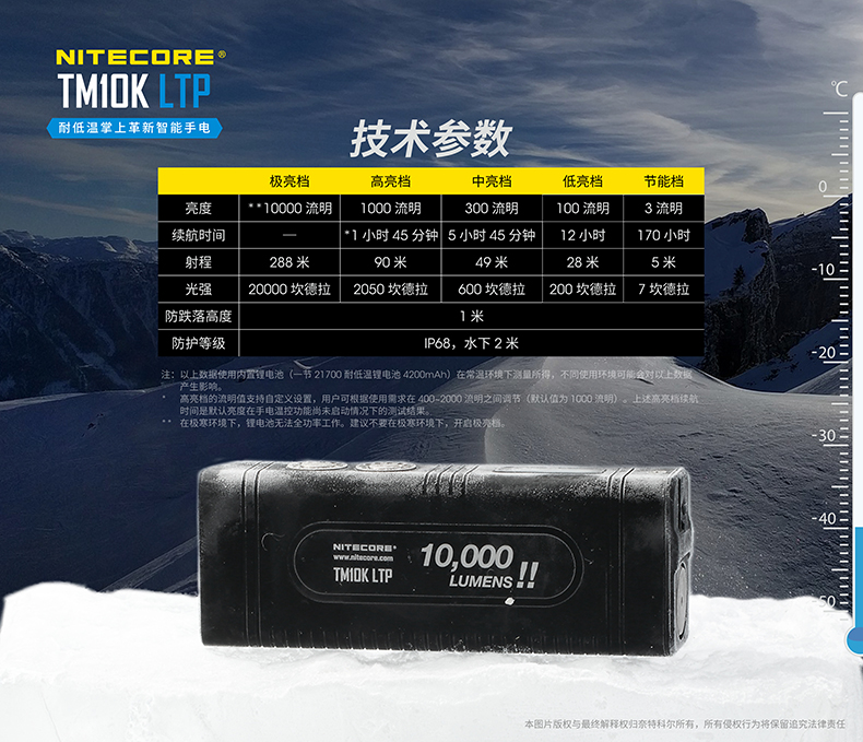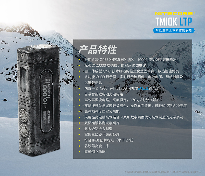 NITECORE奈特科尔TM10K LTP强光高亮QC2.0快充低温手电筒