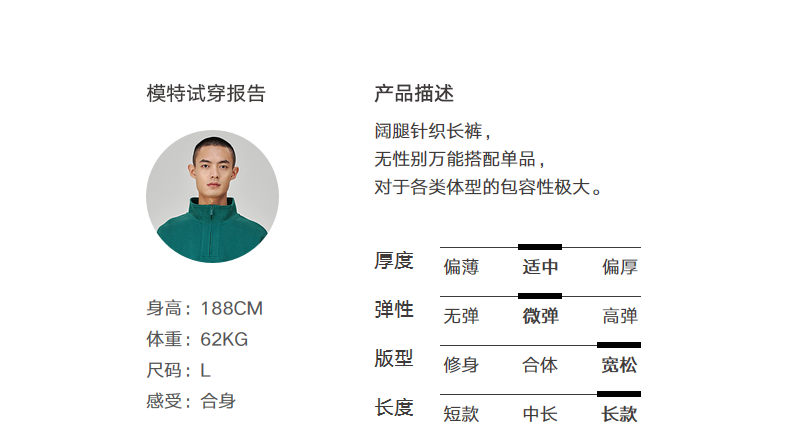 MC |MODE COMMUTER冬季挺括柔软抗皱针织阔腿长裤男MCD102059KB