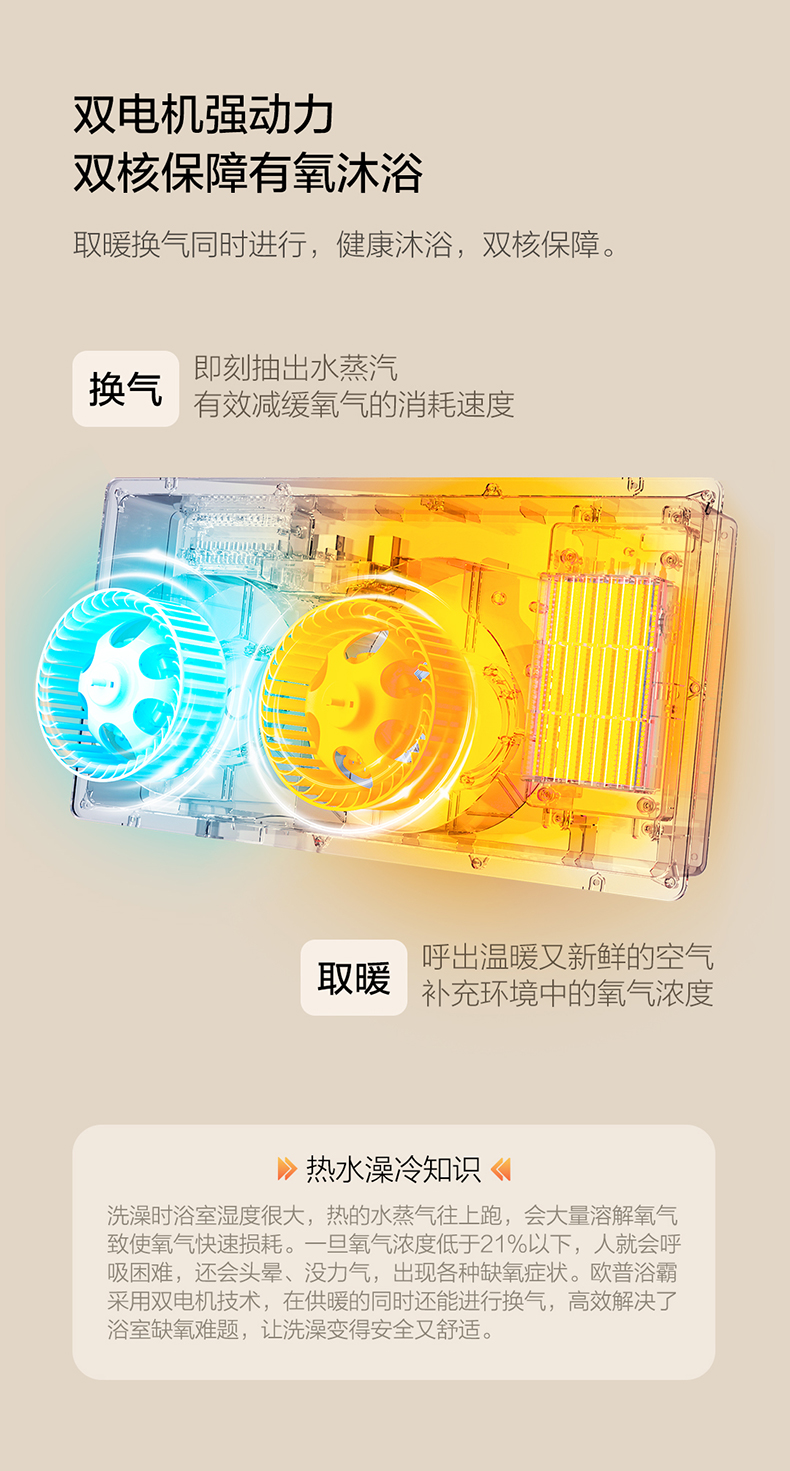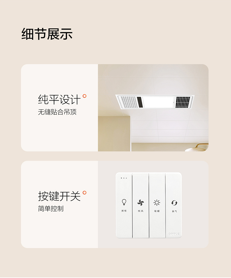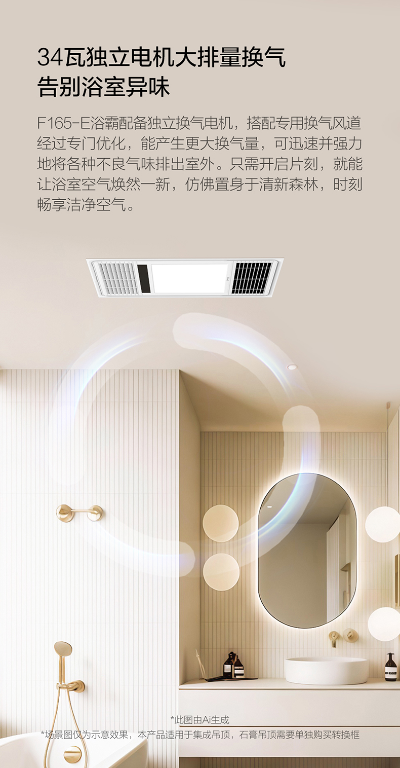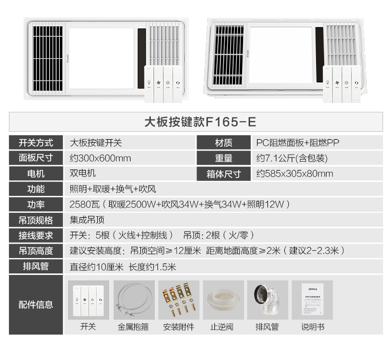 【加1元换购厨卫灯】欧普(OPPLE)F165-E 风暖浴霸 2500W 双核
