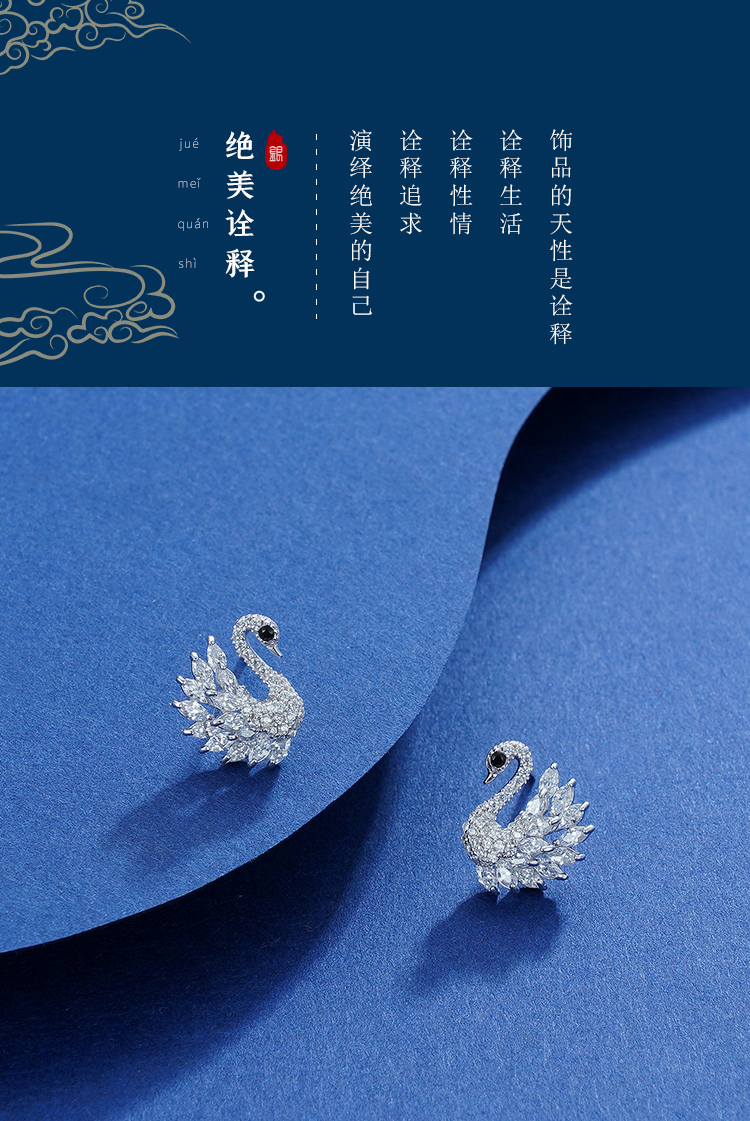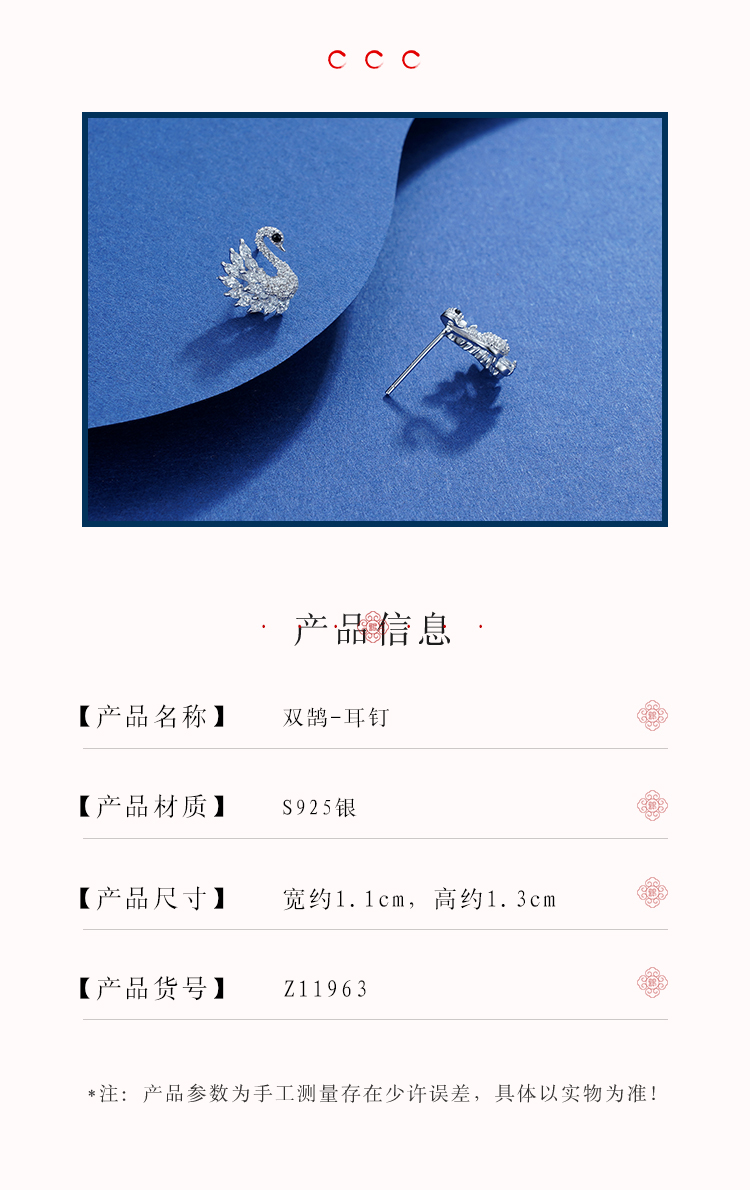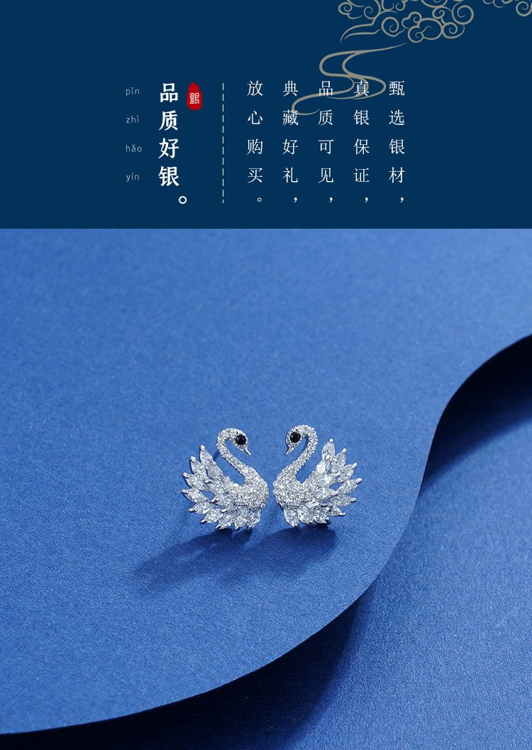 子佩集S925银【双鹄】耳钉【Z11963】天鹅2111