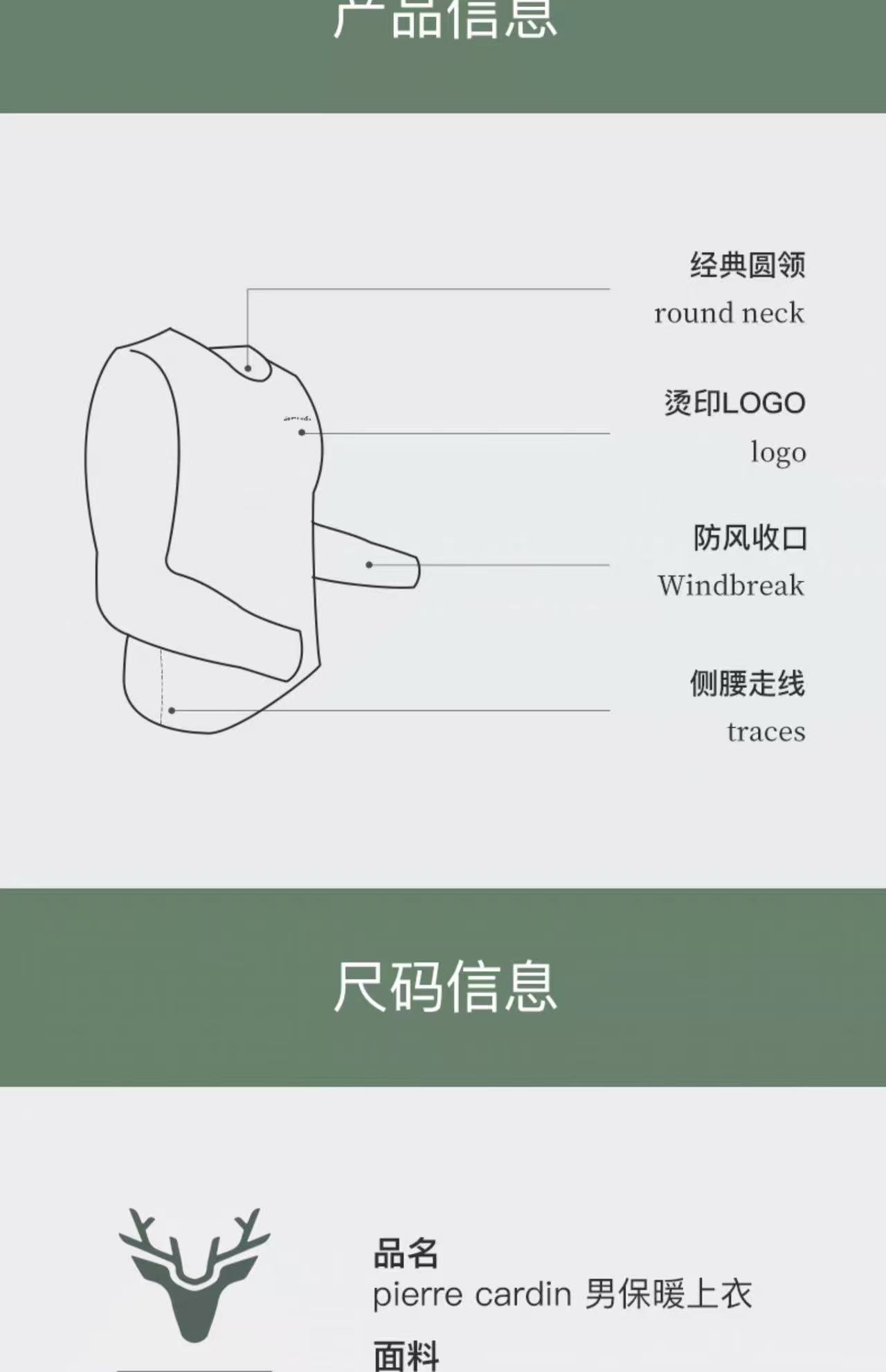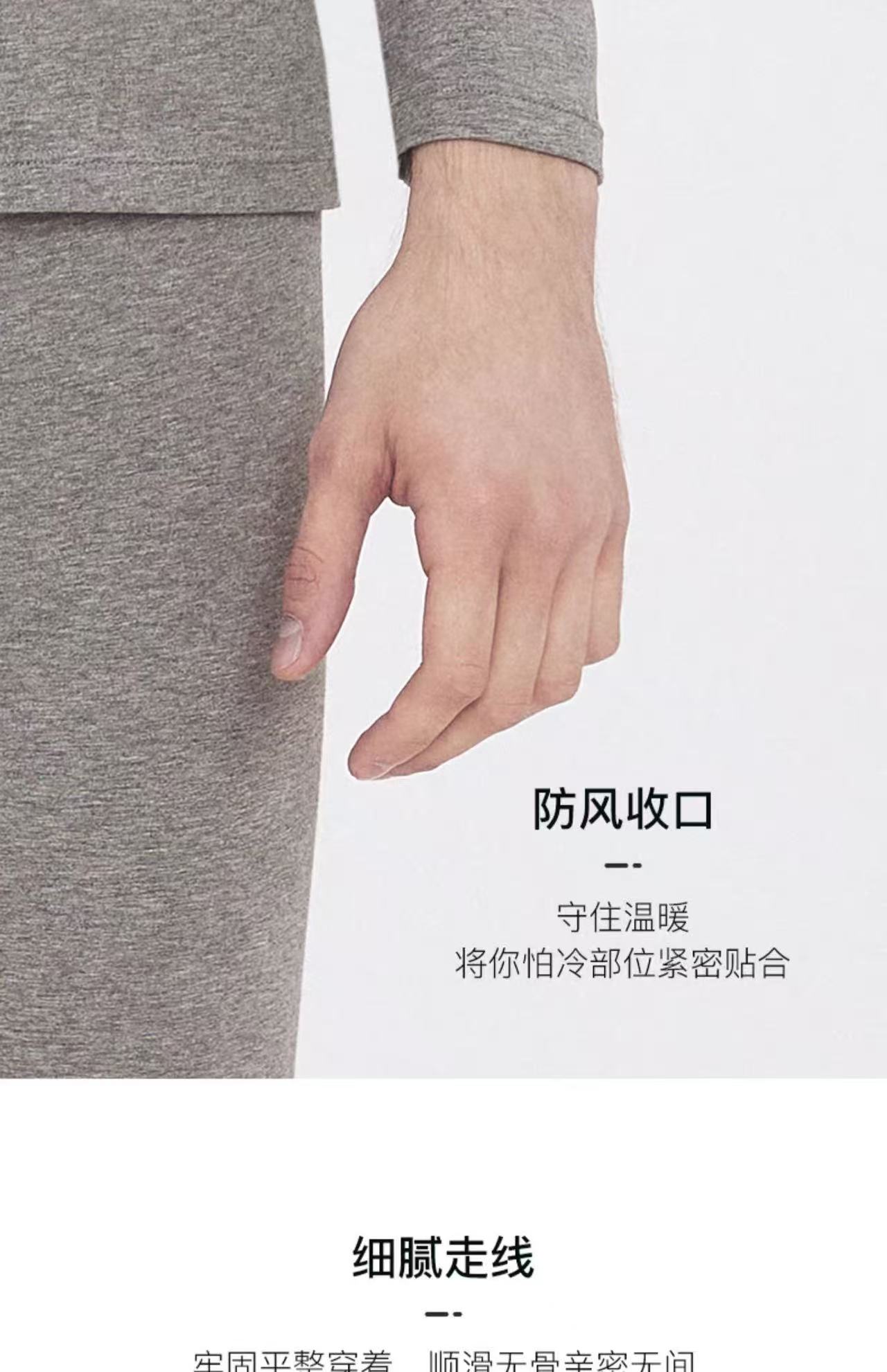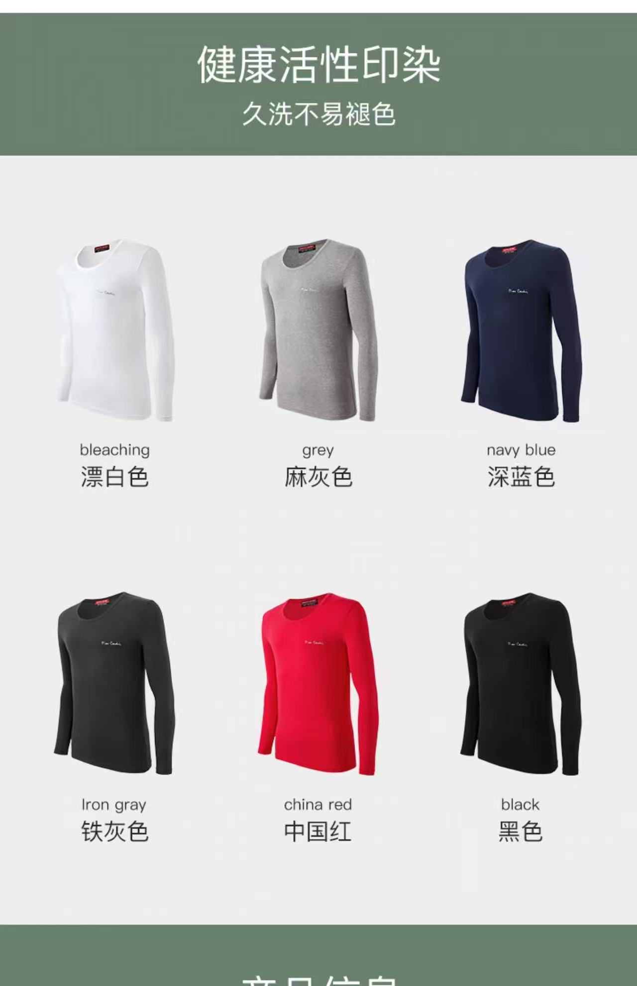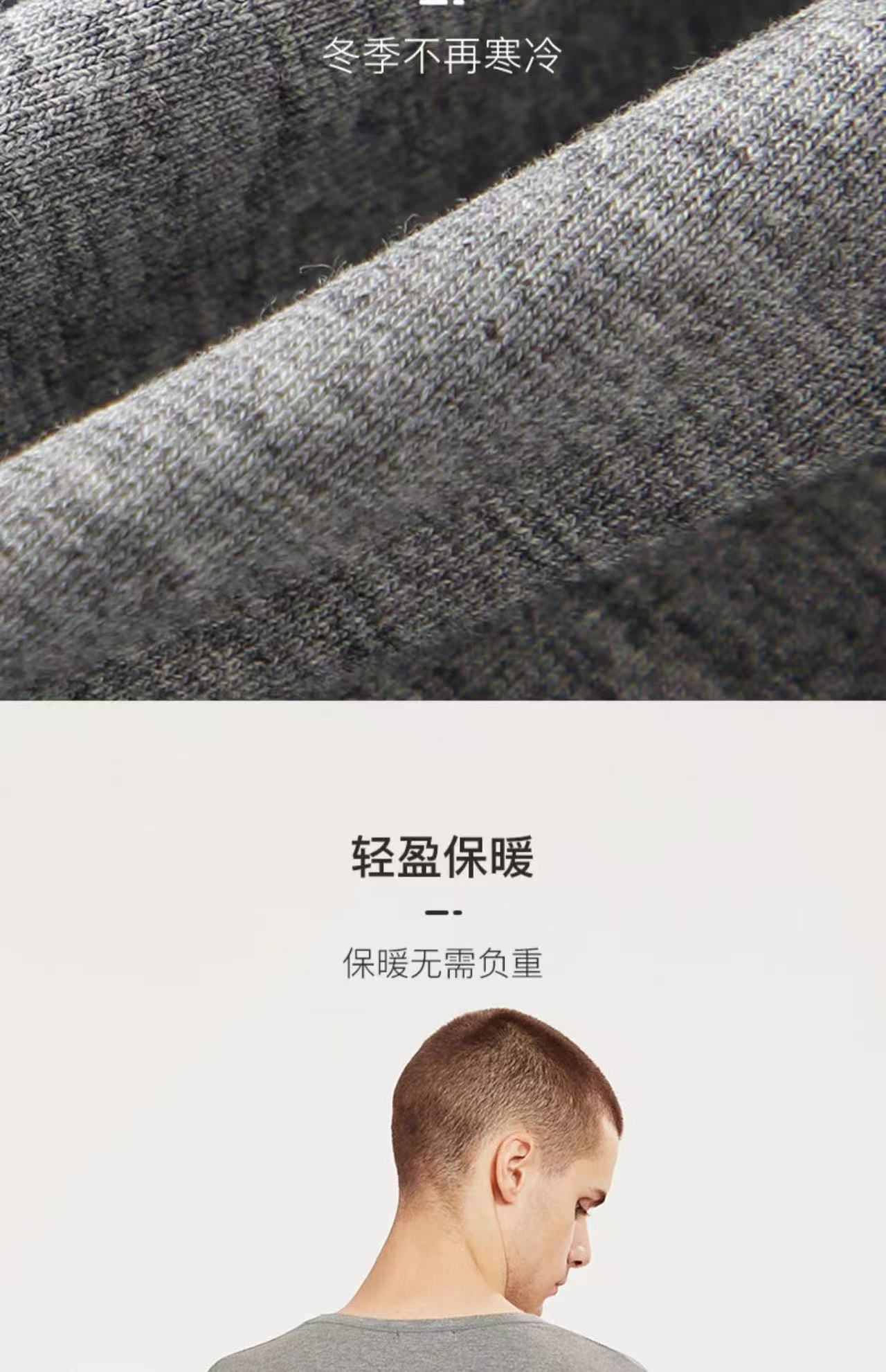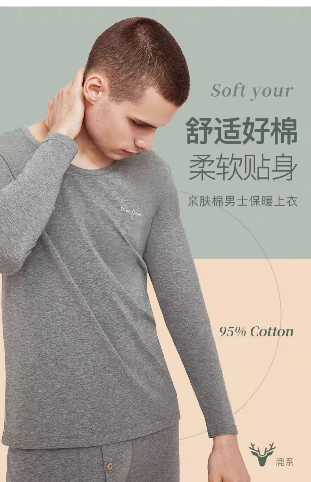 皮尔卡丹男士秋衣保暖内衣上衣单件精梳棉打底衫圆领棉毛衫保暖衣WP774925.1