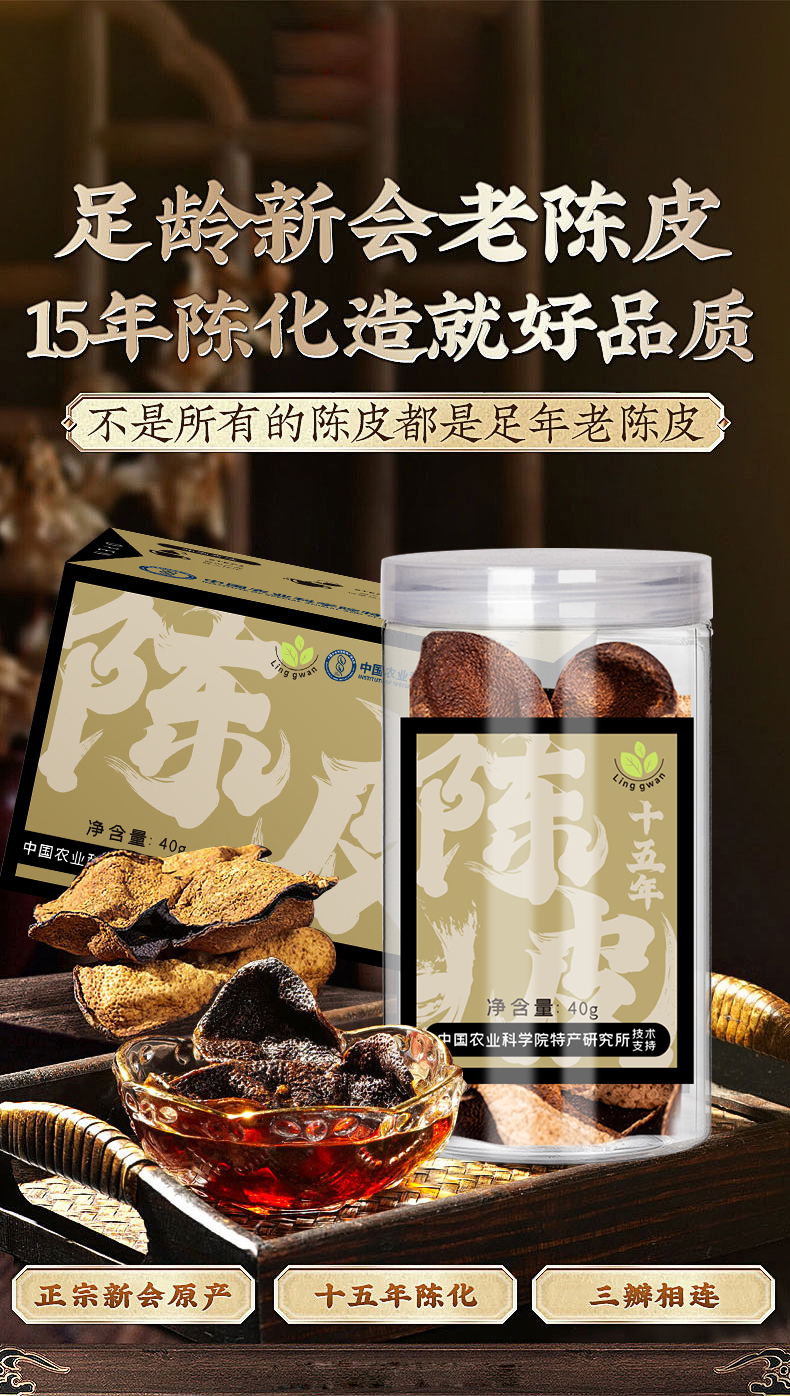 灵均【中国农科院】正宗十五年 15年新会老陈皮干 大红皮 茶叶花草茶泡水40g/罐