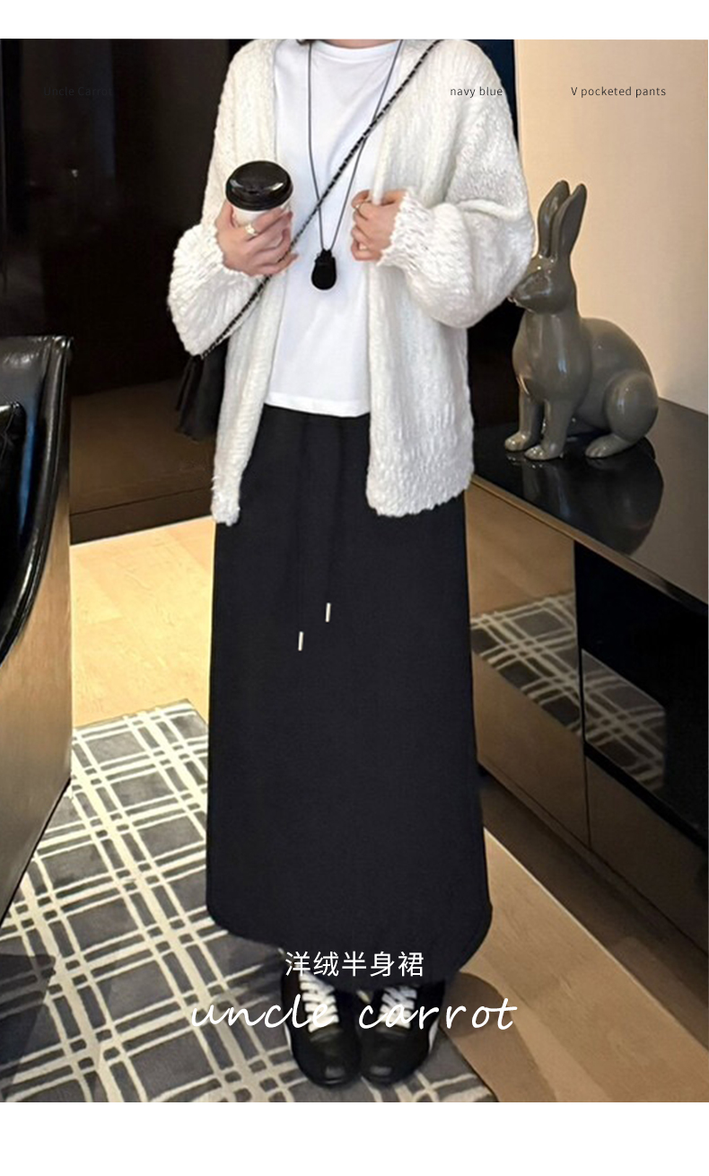 【暖糯亲肤,收腰显瘦】【时髦百搭,慵懒自在】秋冬新款软糯洋绒半身裙女高级感中长款加绒高腰包臀裙百搭直筒裙